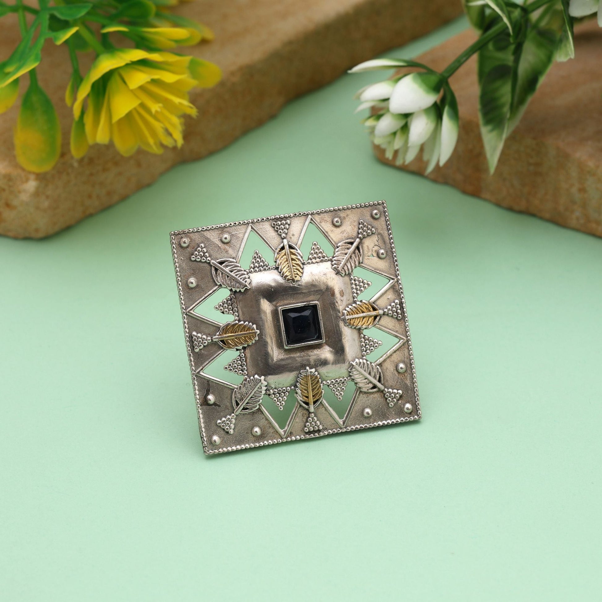 Black Color Dual Tone Oxidised Rings Offering Bold Deep Tones With Ornamental Oxidised Craftsmanship
