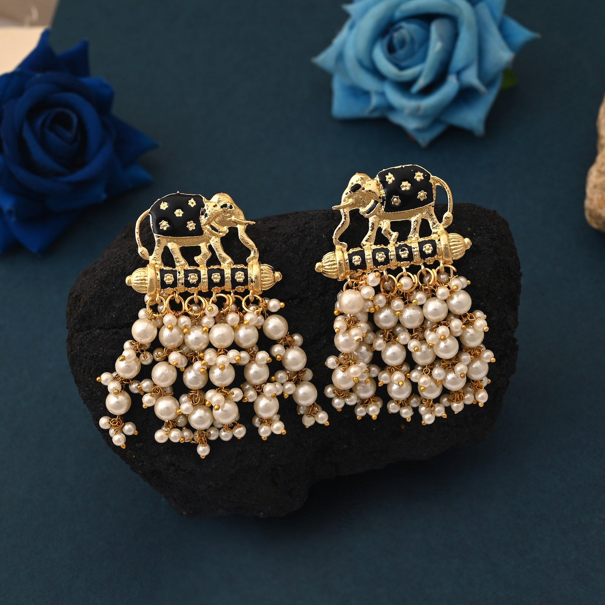 Stilvolle schwarze Meenakari-Ohrringe im Elefanten-Design, perfekt für ethnische Partymode