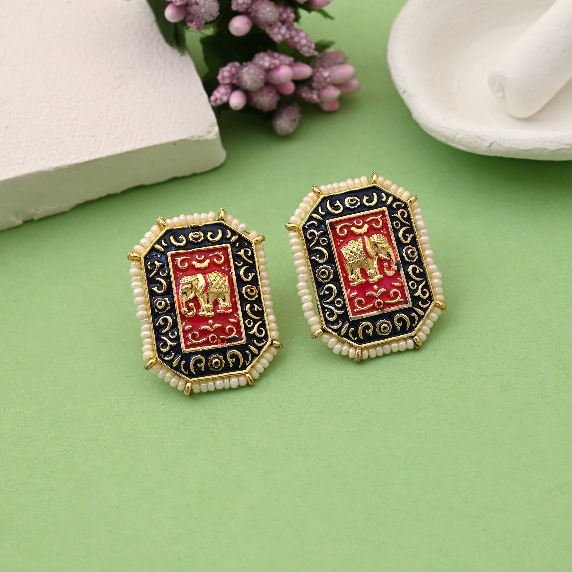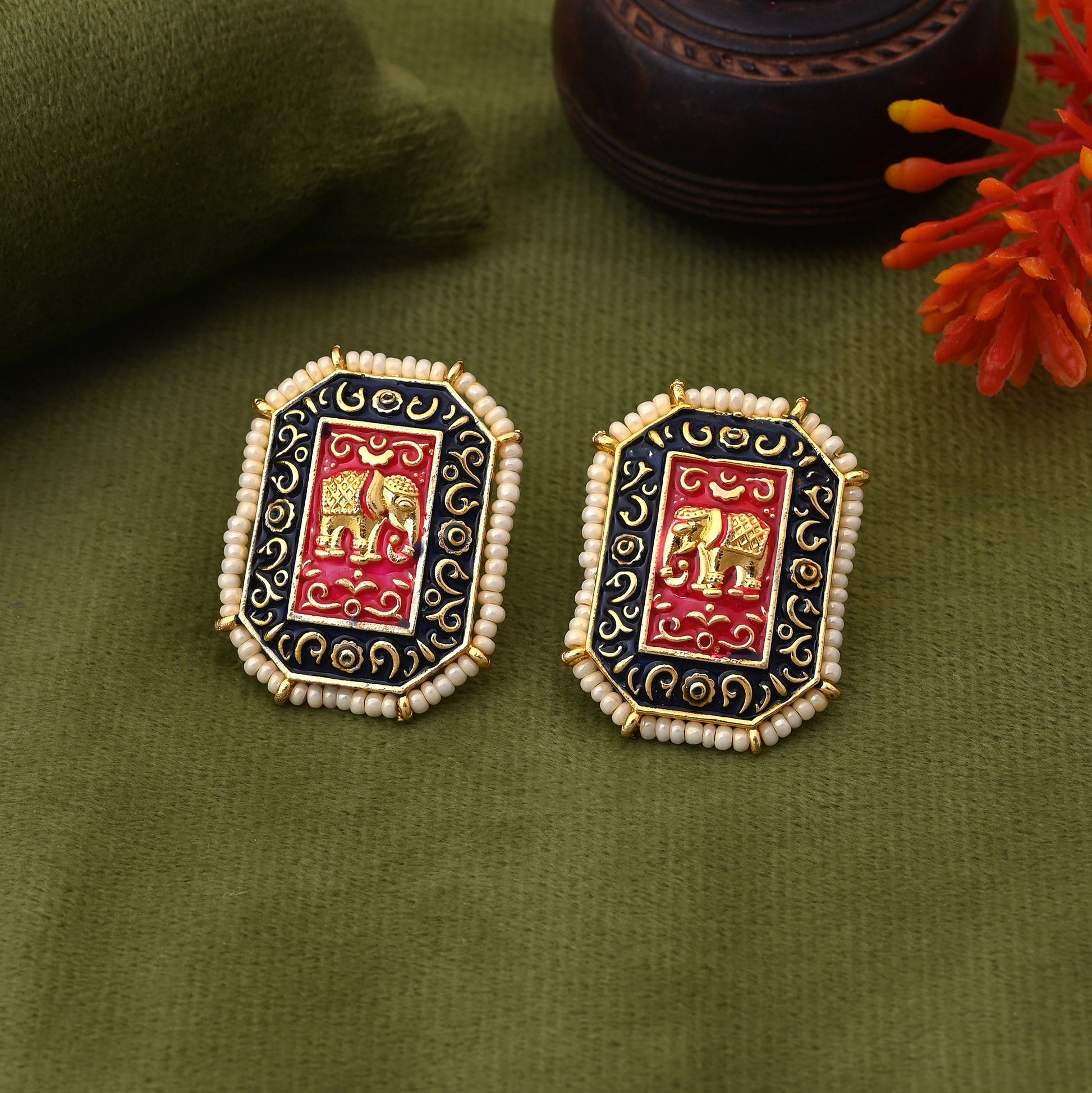 Stilvolle schwarze Meenakari-Ohrringe im Elefantendesign, perfekt für traditionelle indische Outfits
