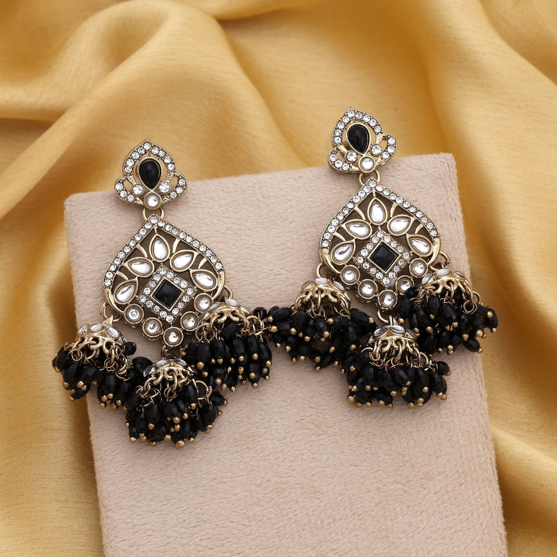 Stilvolle Kundan-Ohrringe in Schwarz mit königlichem Look, perfekt für Braut-Outfits