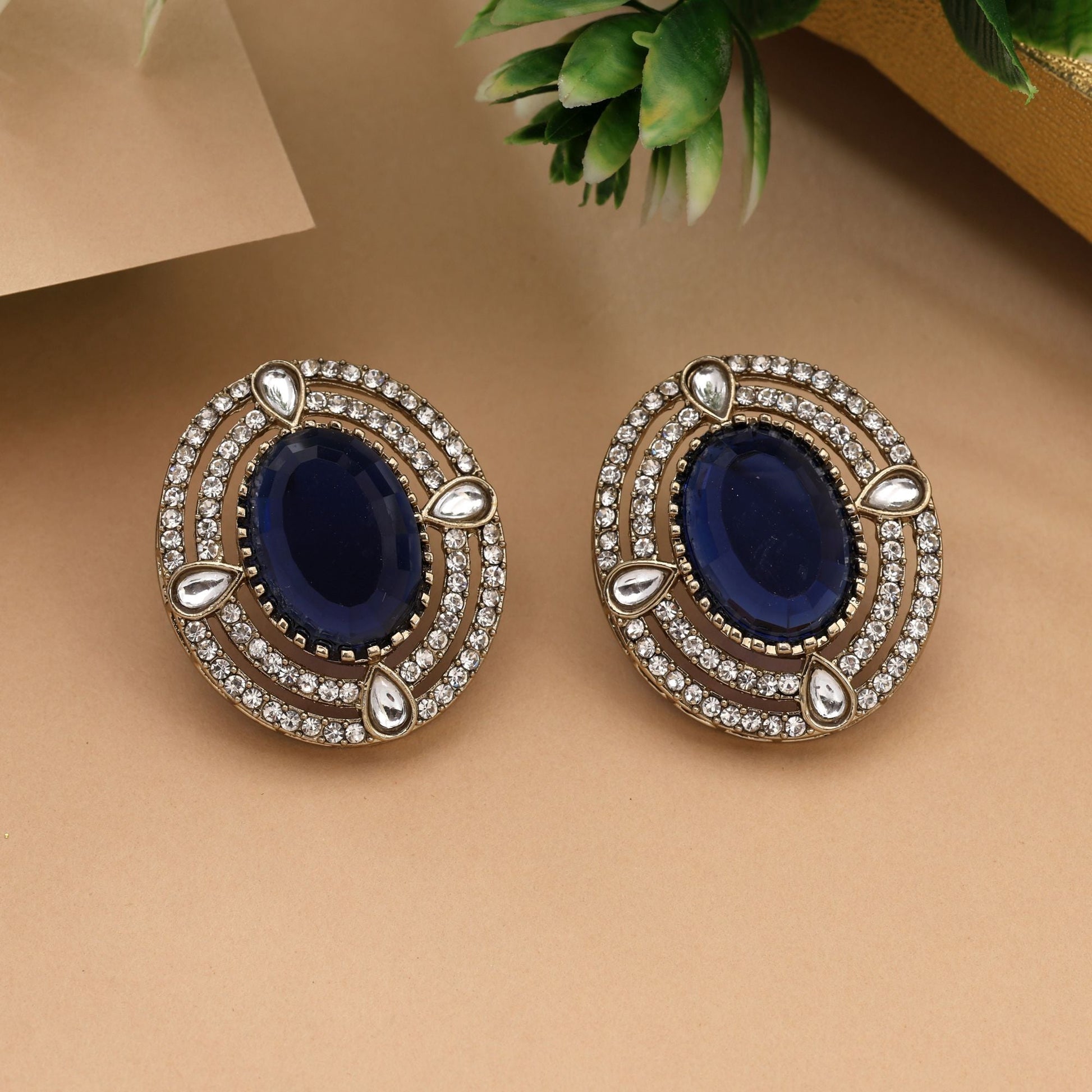 Stilvolle blaue Ohrstecker aus Kundan, ideal für Feste und Feiern