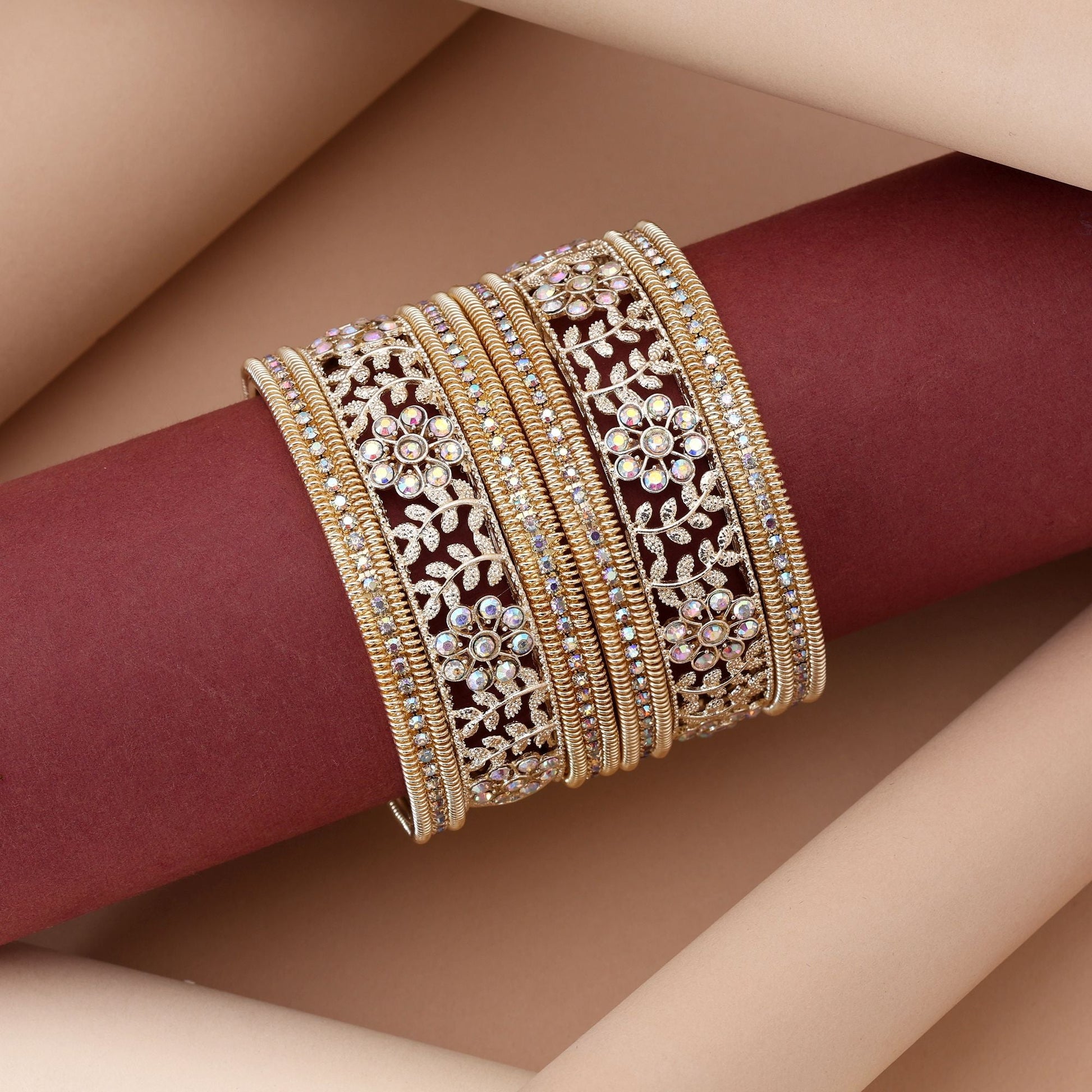Stilvolles, goldfarbenes 6er-Set Armreifen-Kombination mit aufwendigen Designdetails