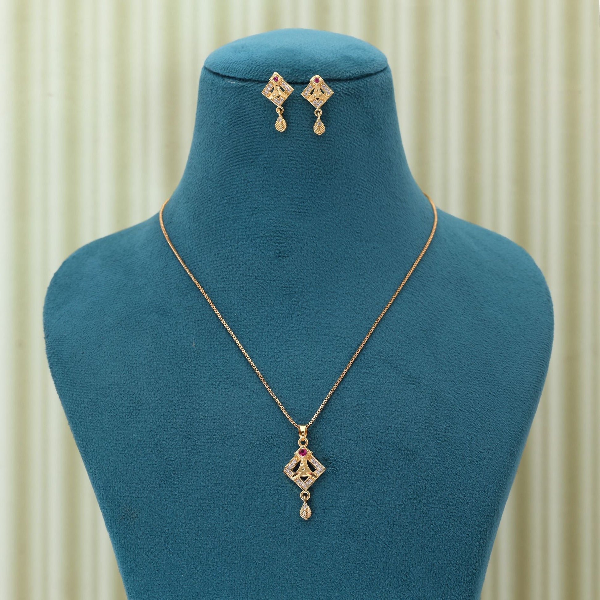 Gold Color Chain Pendant With Earring Featuring Minimal Design For Modern Fashion Lovers