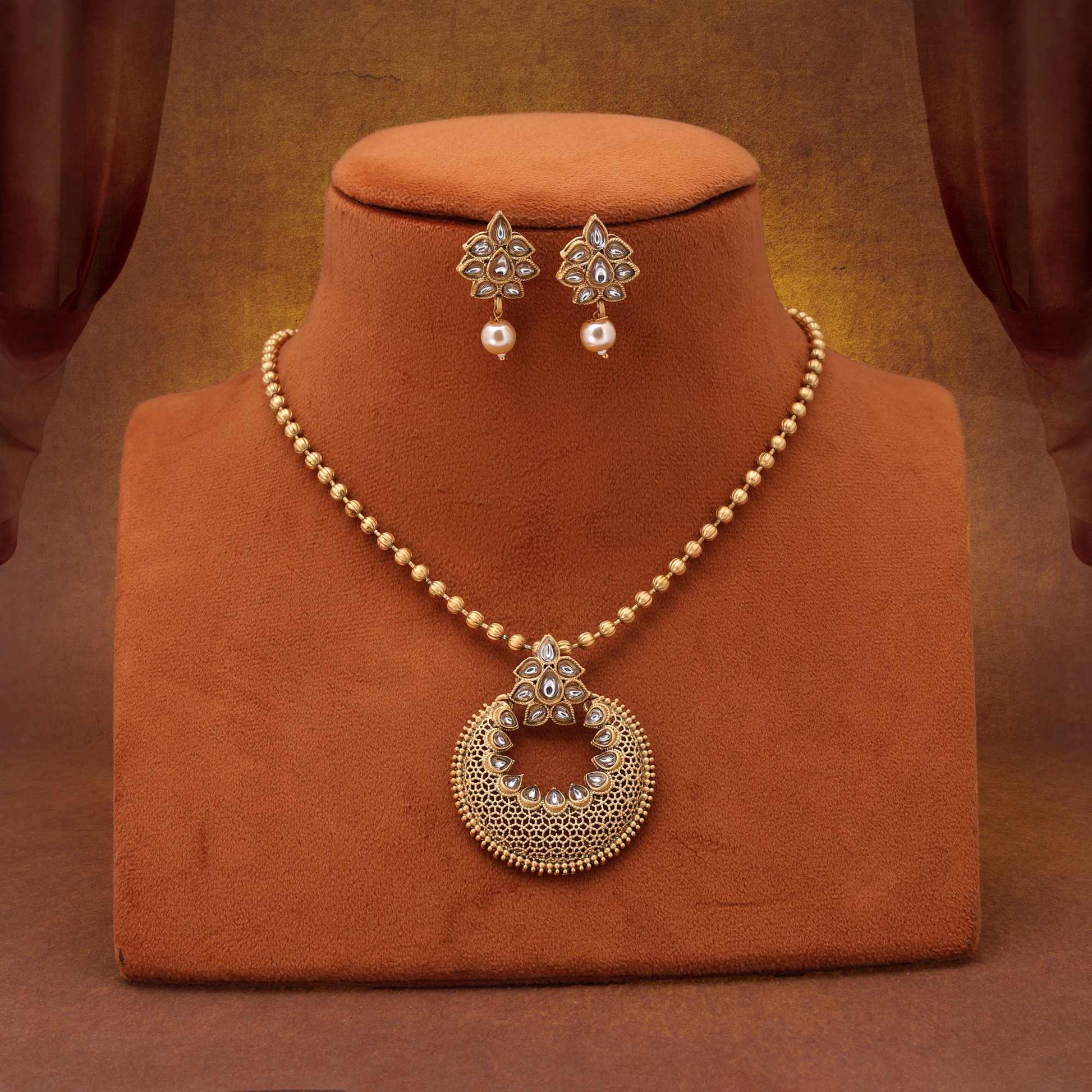 Premium Gold Color Matte Gold Necklace Set Featuring Artistic Floral And Leaf Pattern Design