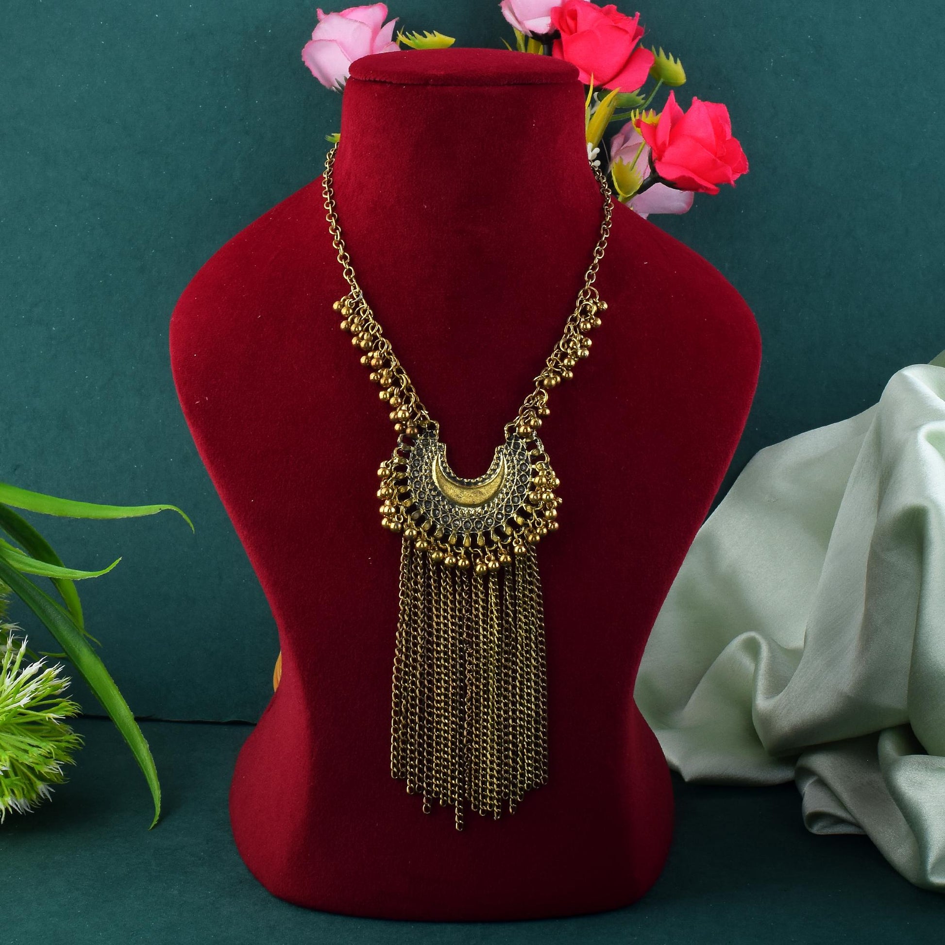 Zeitloses, goldfarbenes, oxidiertes Halsketten-Set für Feiern und Festtage