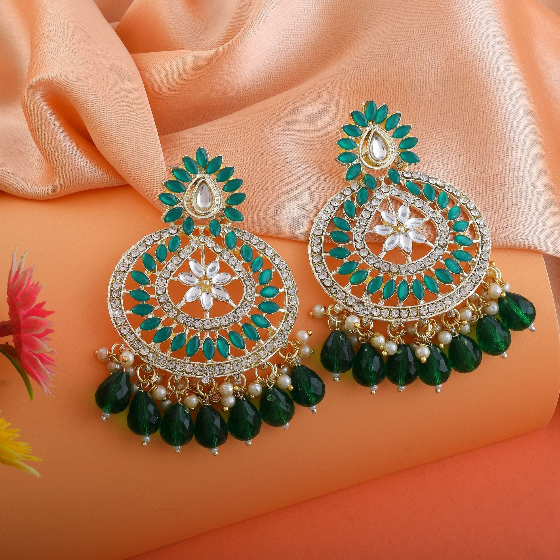 Grüne Kundan Ohrringe