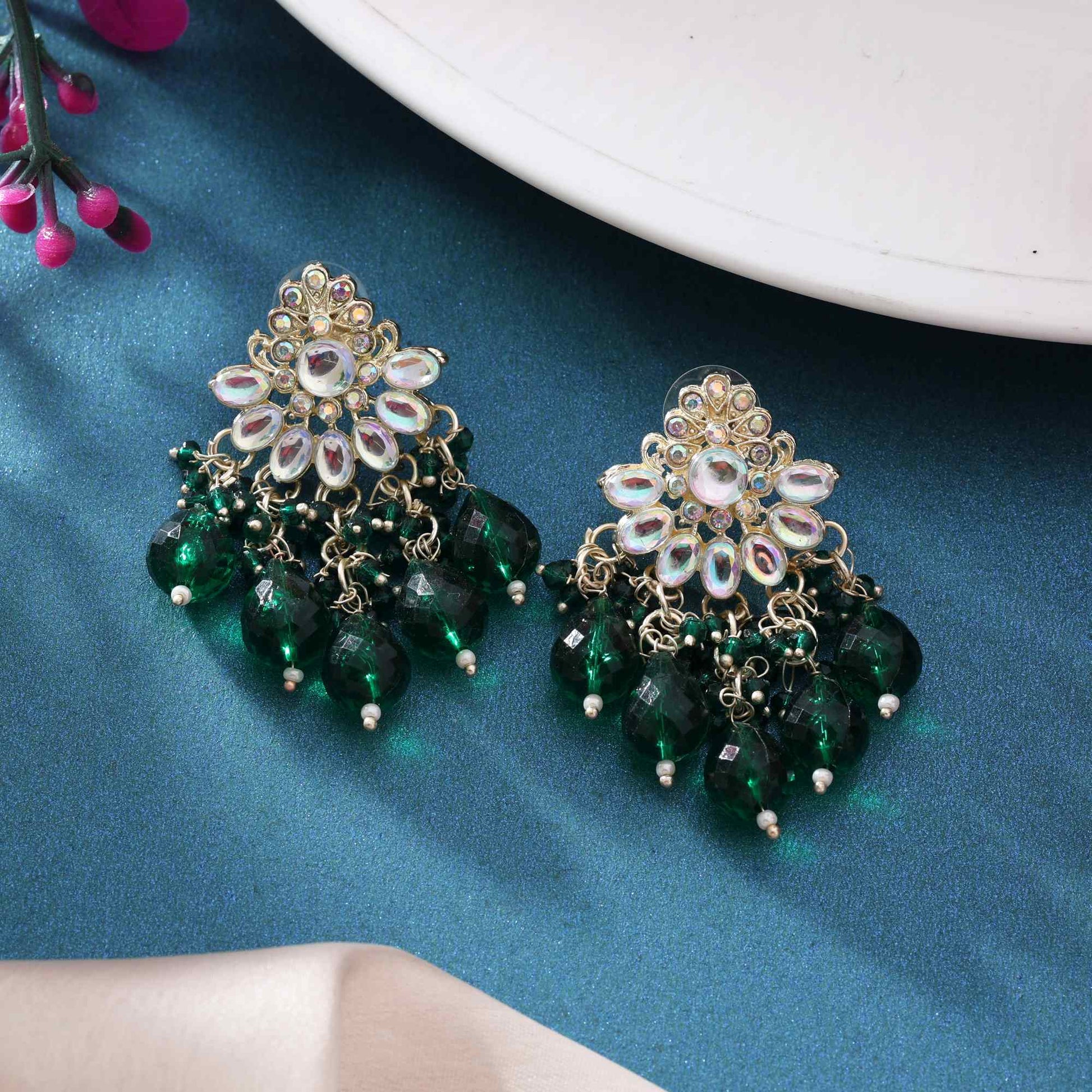Grüne Kundan-Ohrringe mit Goldpolitur und wunderschöner Handwerkskunst