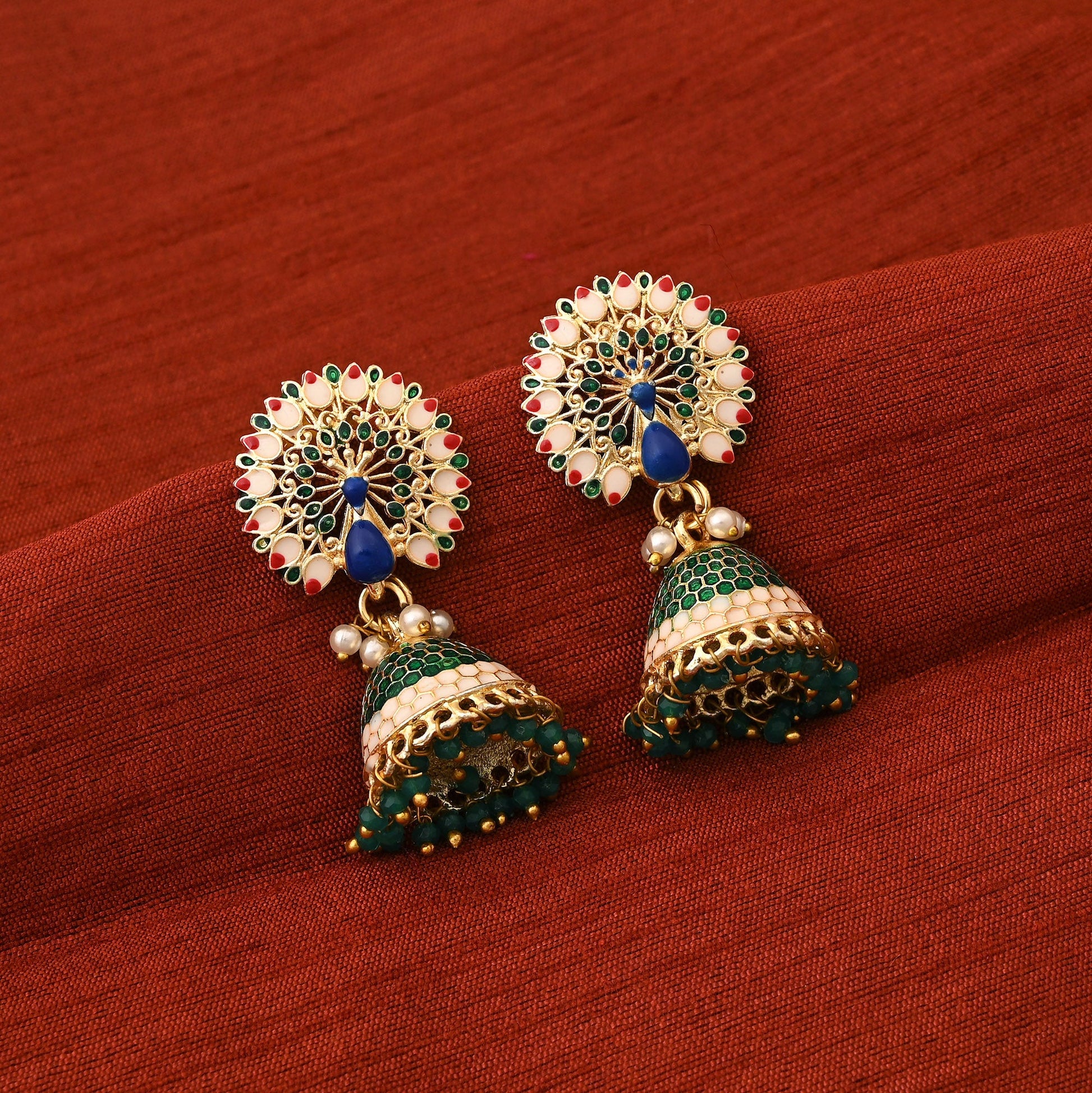 Königsgrüne Meenakari-Ohrringe mit handgefertigter künstlerischer Arbeit für festliche Feiern
