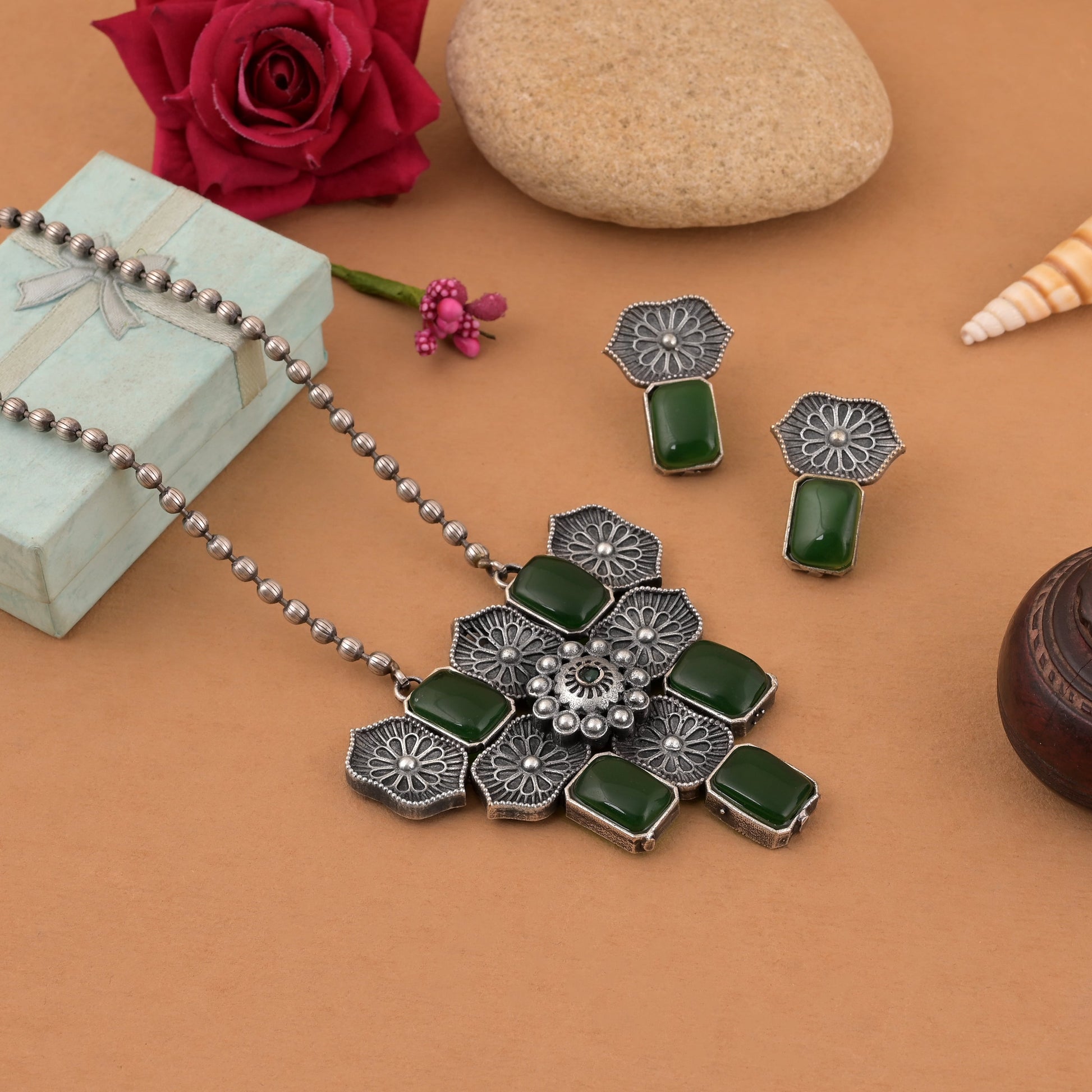 Grün gefärbtes oxidiertes Halskettenset mit Spiegelarbeit und Tribal-Finish