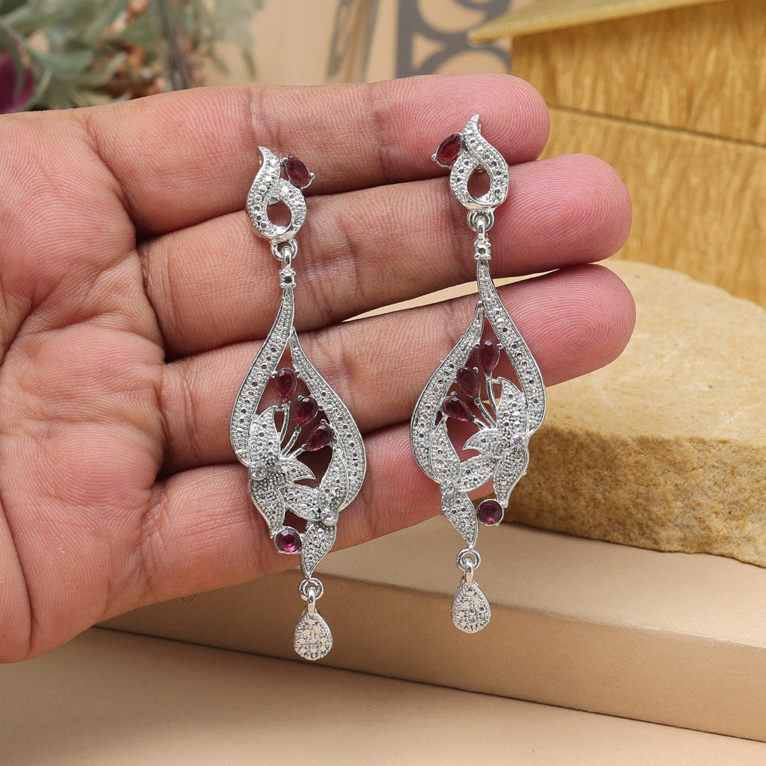 Magentafarbene Modeohrringe im zeitgenössischen Design für Party-Styling