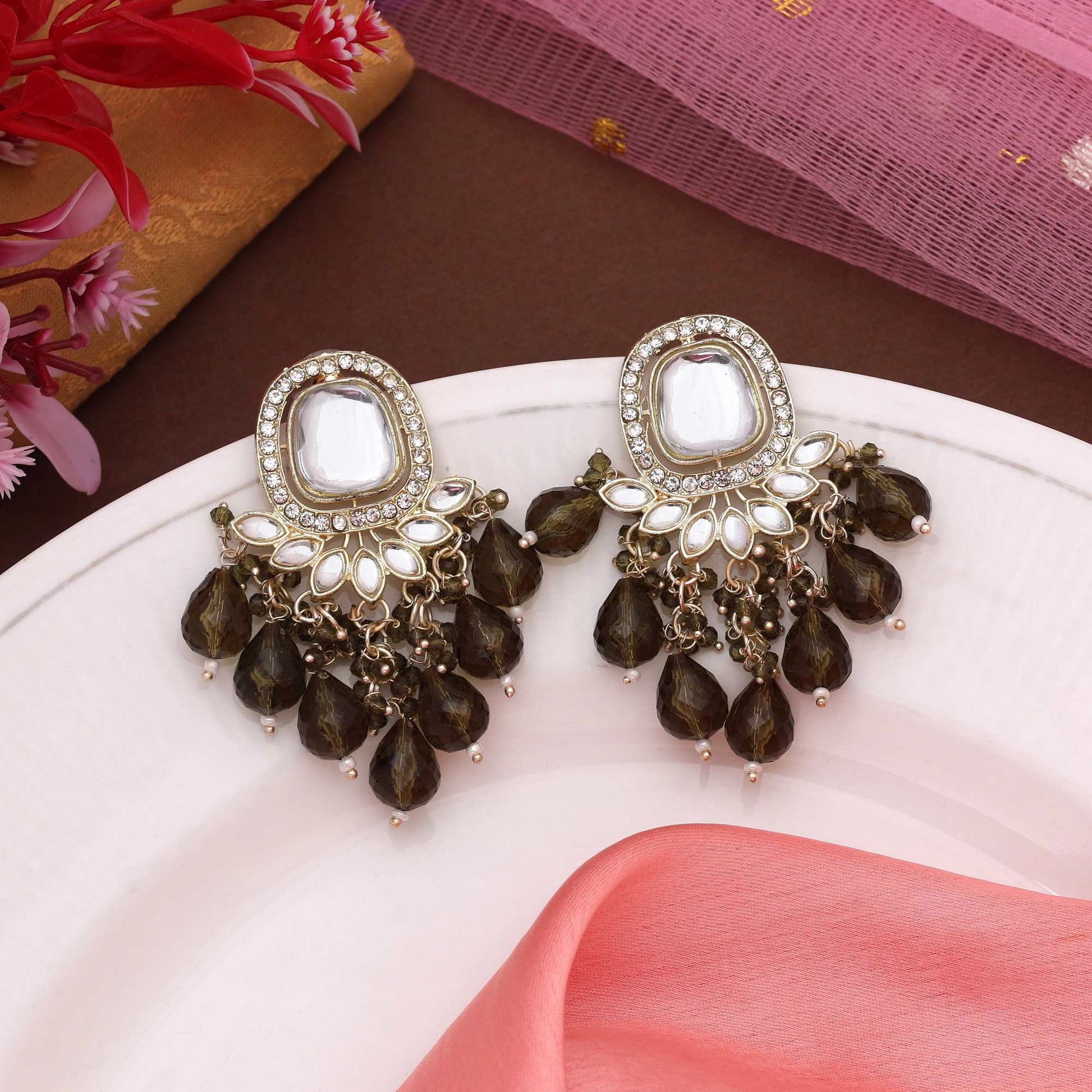 Mehandi Grüne Kundan Ohrringe mit königlichem Finish für festliche Outfits