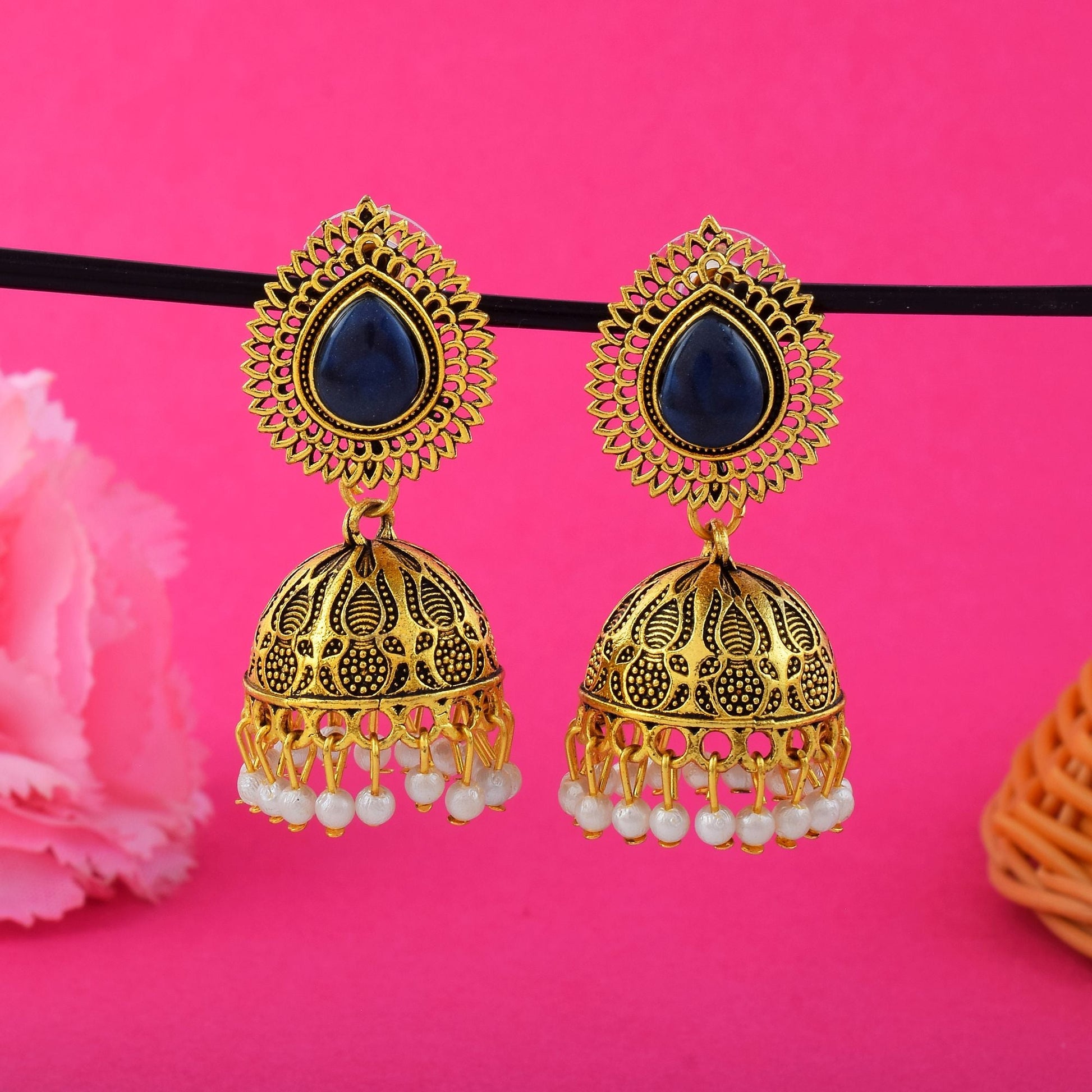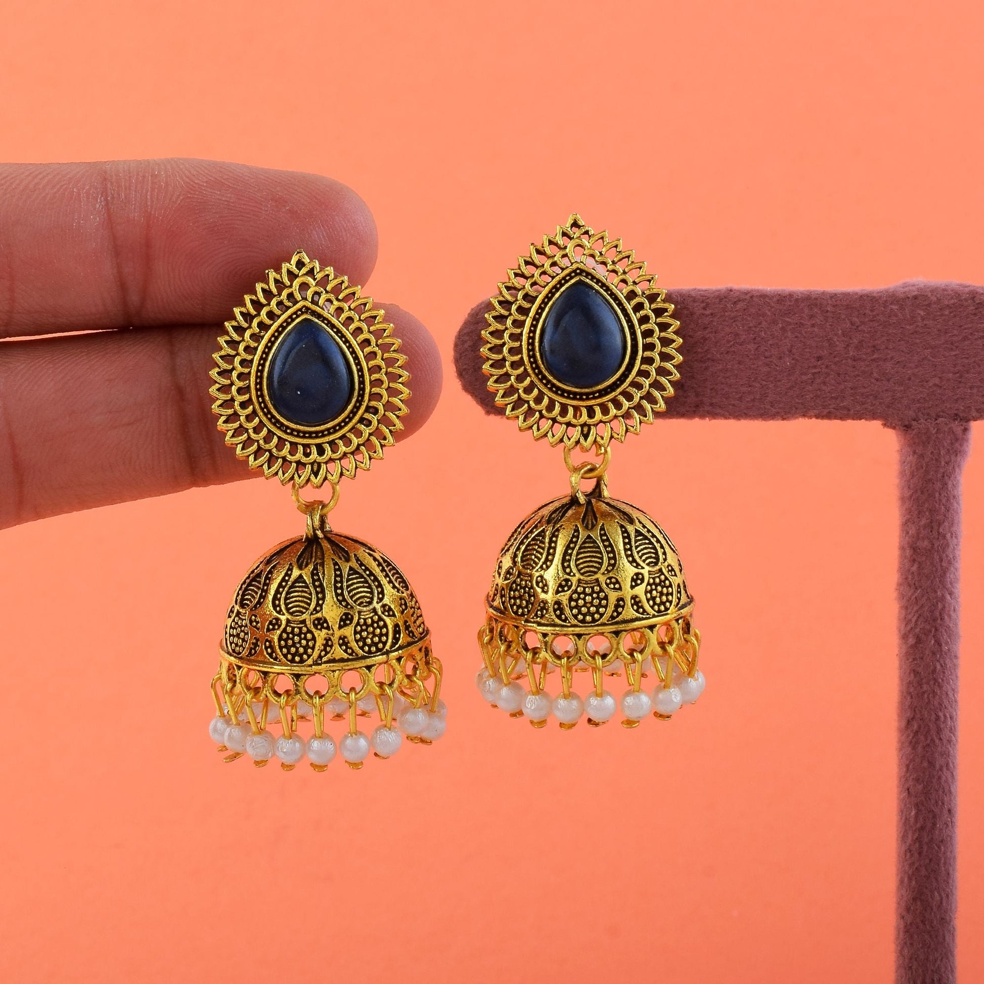 Stilvolle oxidierte Ohrringe in Marineblau, perfekt für Brautpartys und ethnische Outfits.