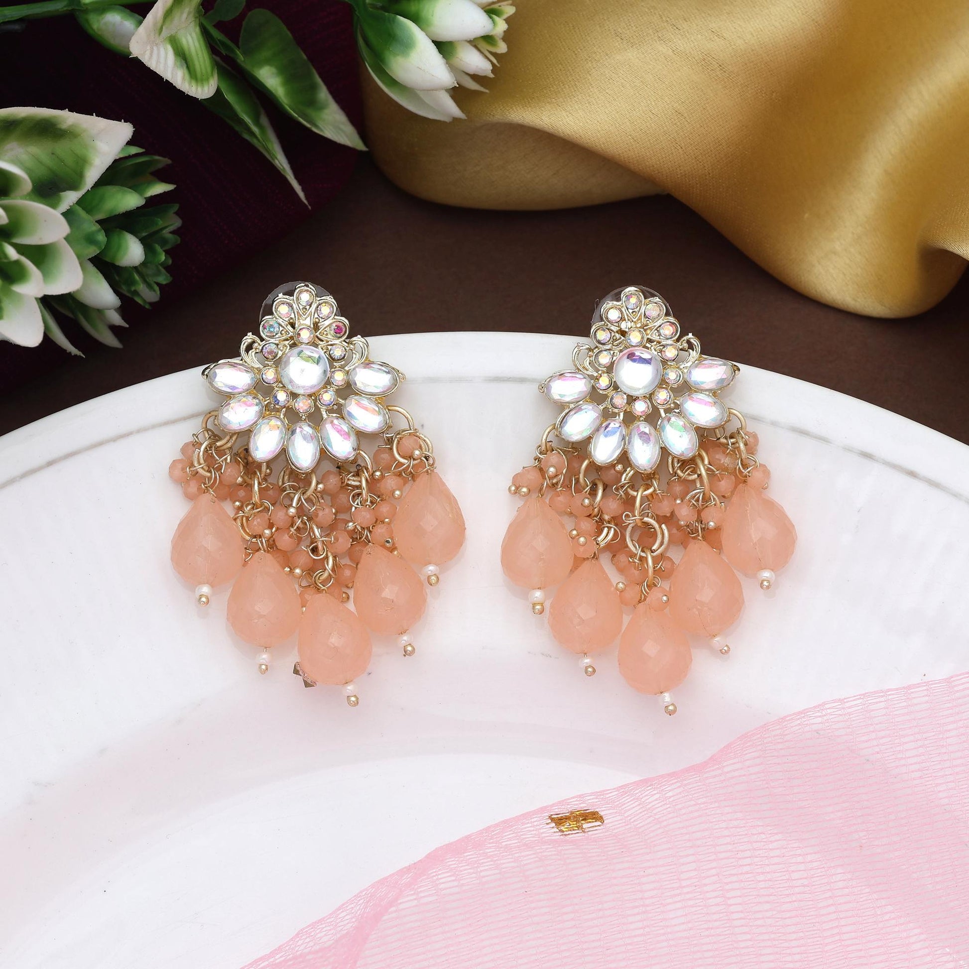 Pfirsichfarbene Kundan-Ohrringe mit künstlerischer Handwerkskunst für ethnische Looks