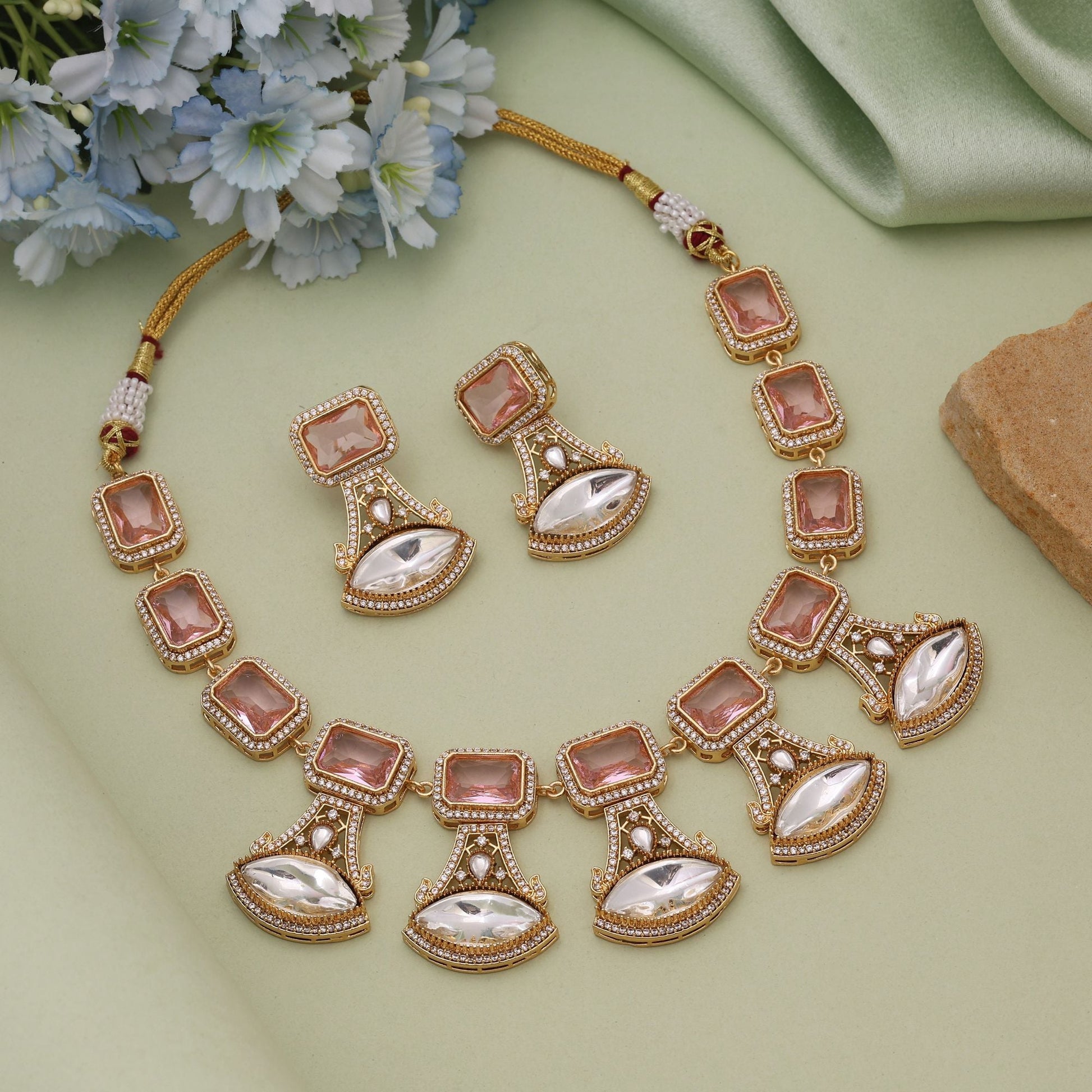 Pink Color American Diamond Necklace Set Offering Graceful Shine For Celebrations