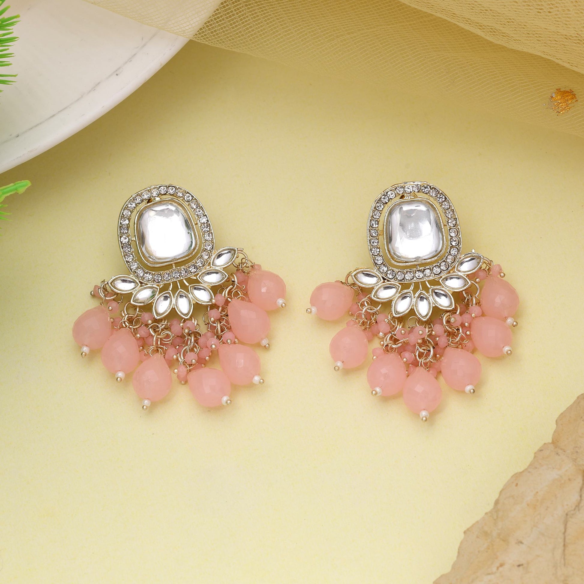 Rosafarbene Kundan-Ohrringe mit zarter Steinfassung, perfekt für Hochzeiten