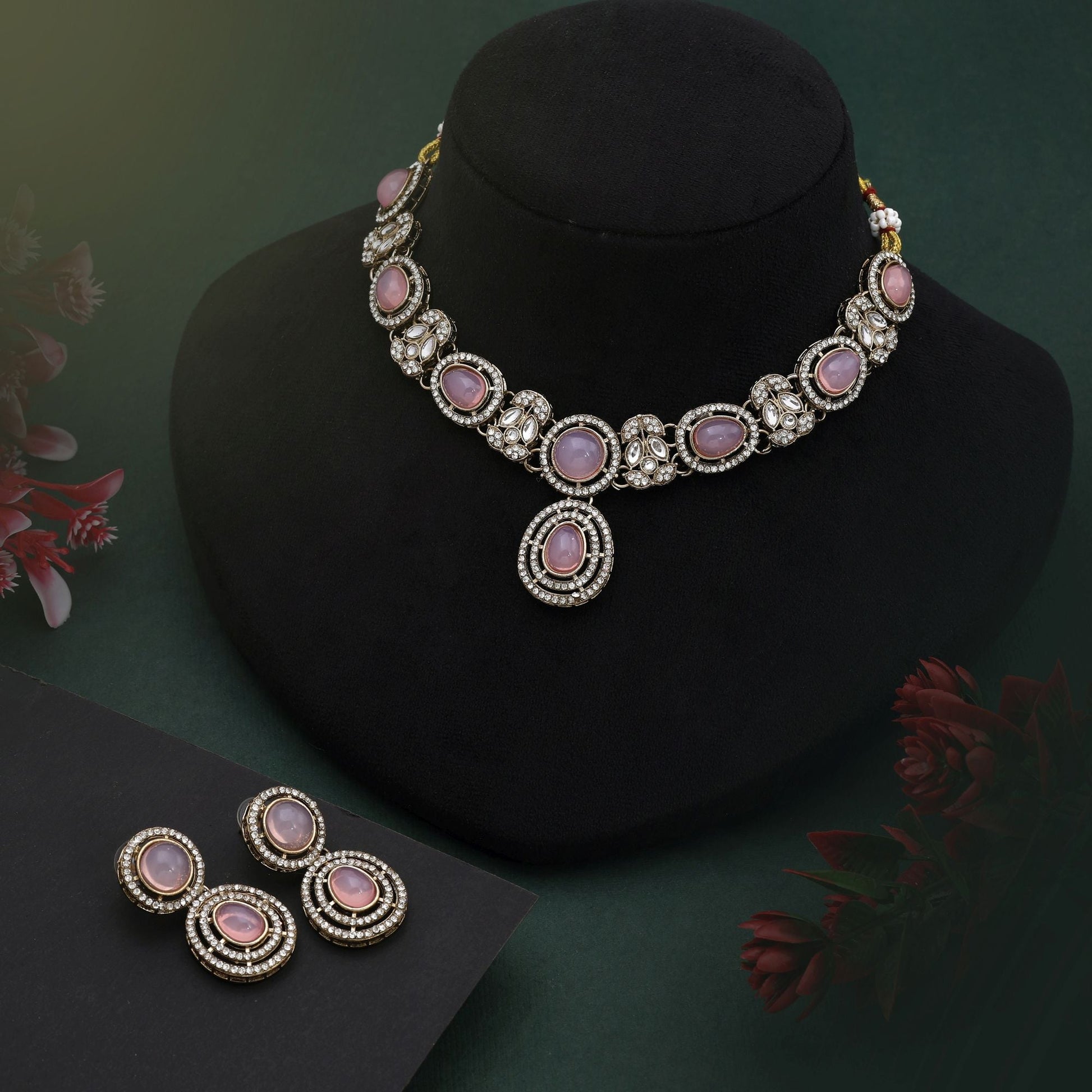 Königlich lila Kundan Halskette Set mit polierten Steinen für Partyanlässe