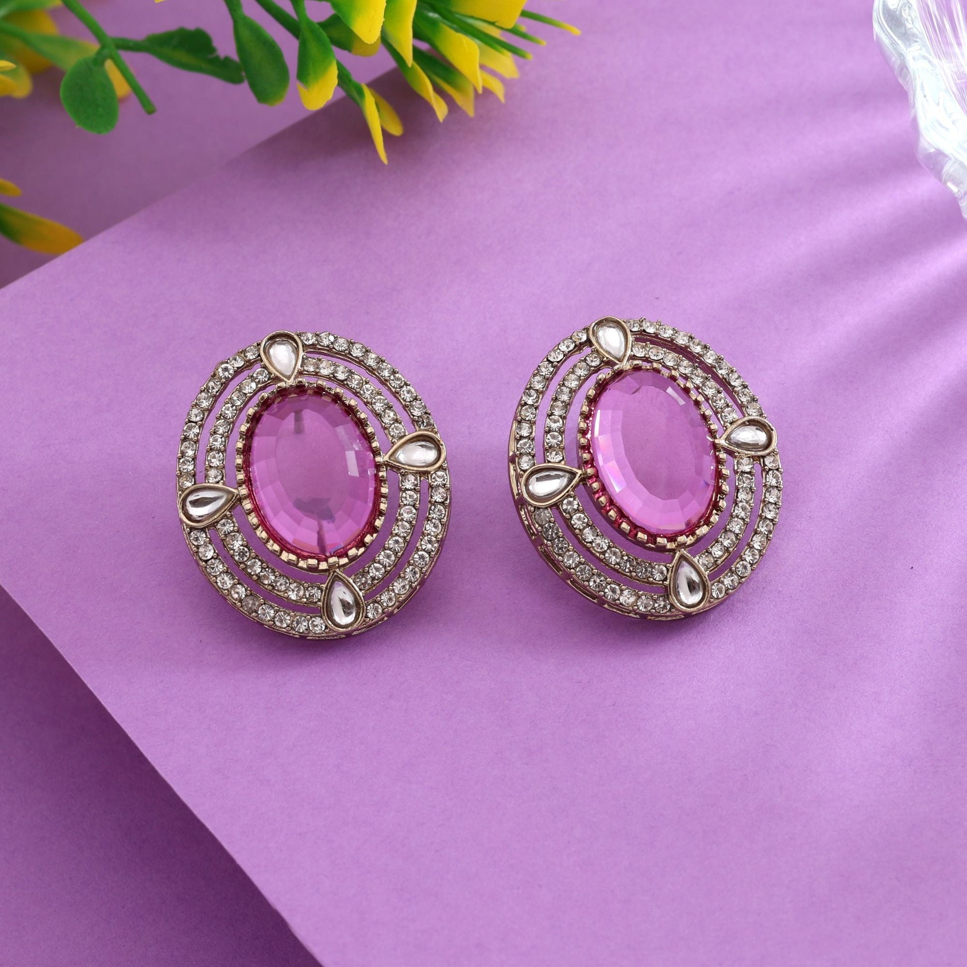 Königlich lila Kundan Ohrstecker für klassische indische Festtagskleidung