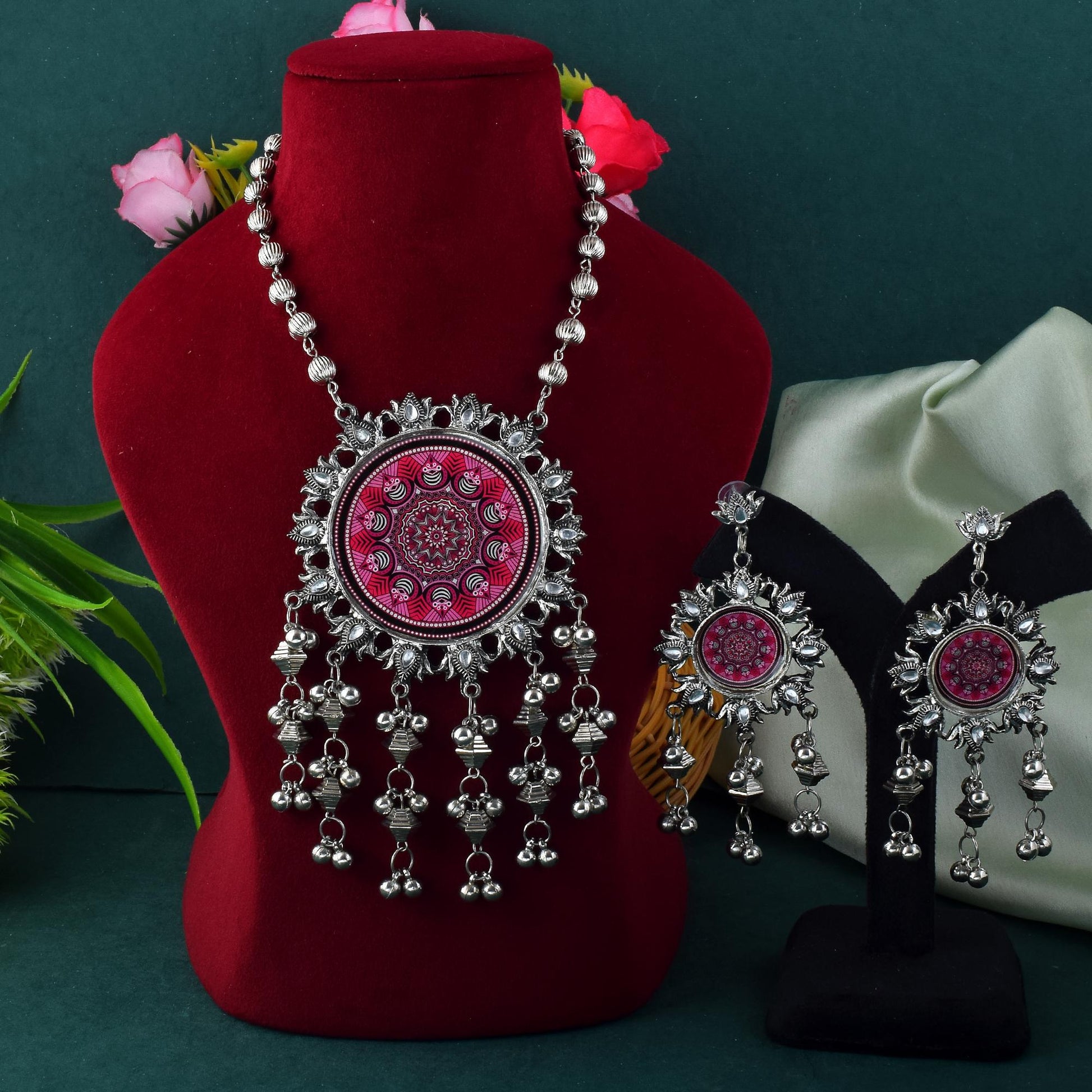Royal Rani Color Meena Work Oxidiertes Halskettenset mit traditionellen Motiven