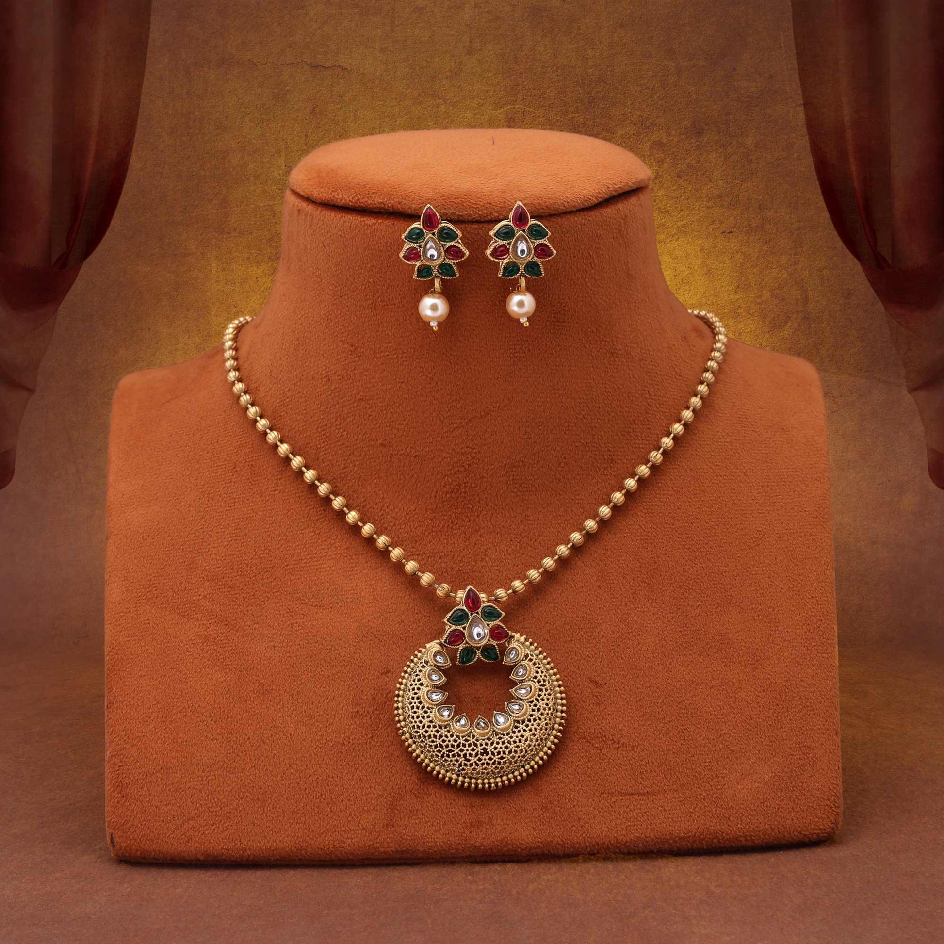 Ornate Rani And Green Color Matte Gold Necklace Set For Wedding, Festival, And Celebration Wear