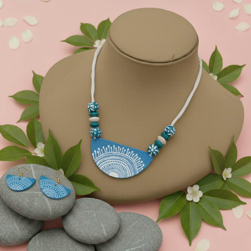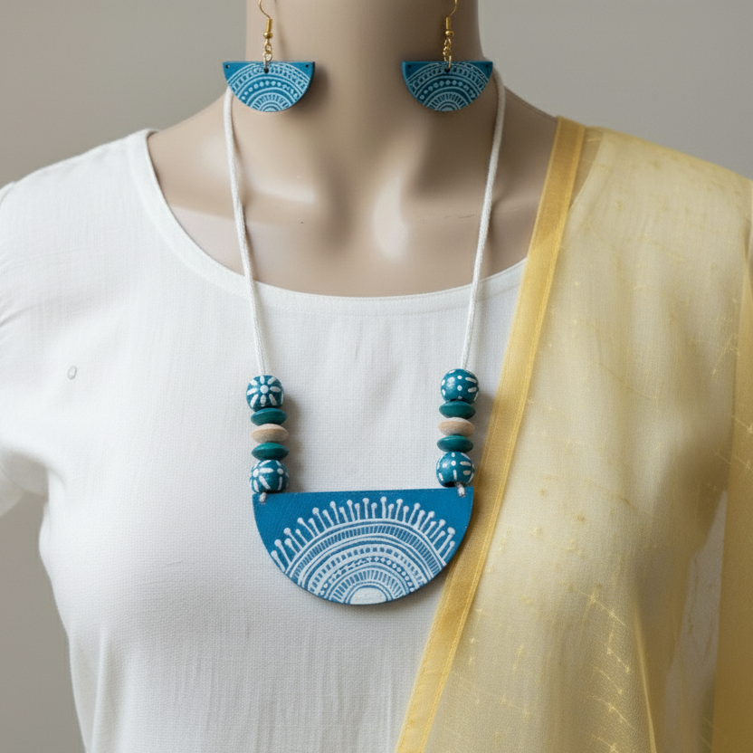 Königsblaues Halsketten-Set aus handgefertigtem Holz, perfekt für moderne ethnische Frauen