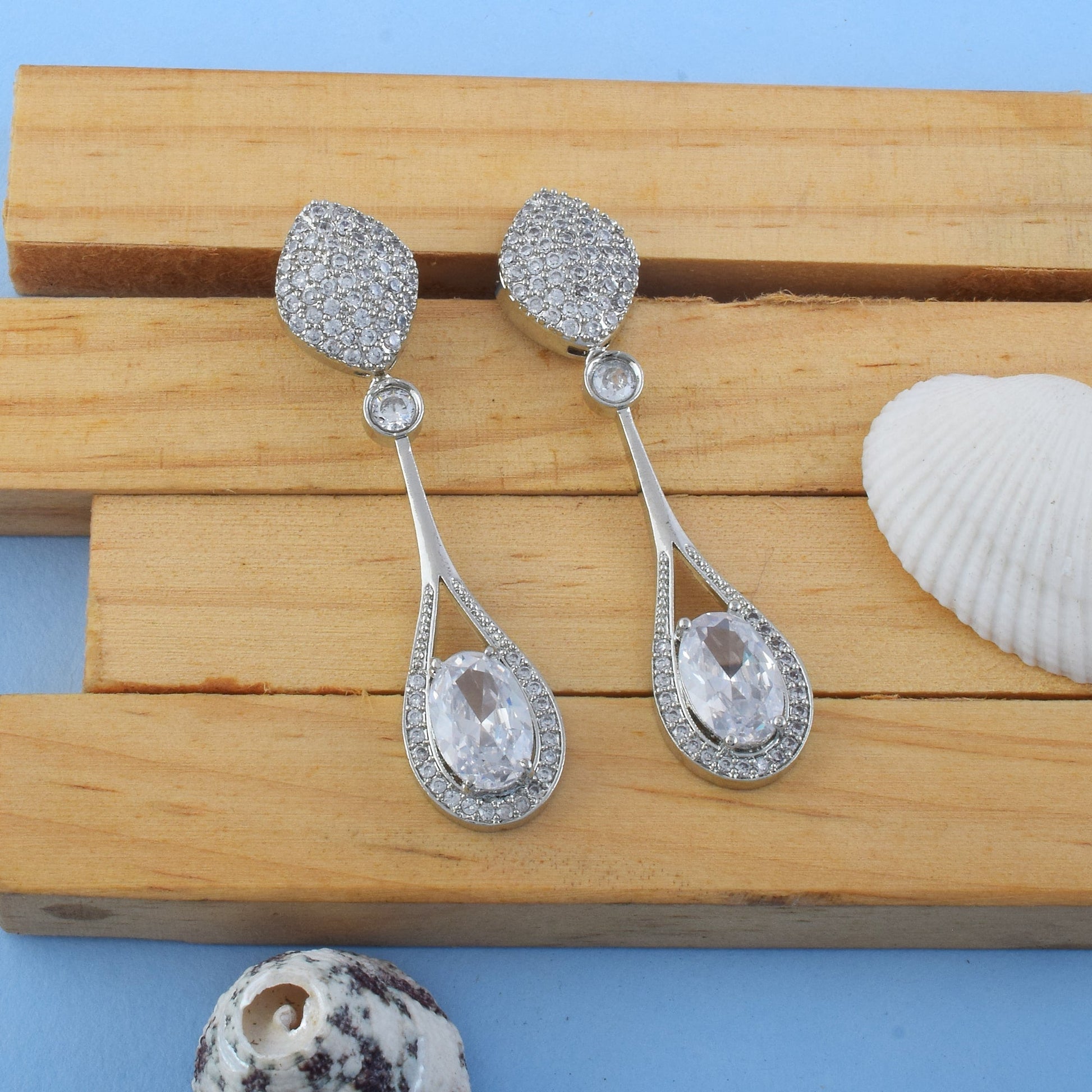Silberfarbene amerikanische Diamantohrringe mit auffälligem kreisförmigen Perlenstil