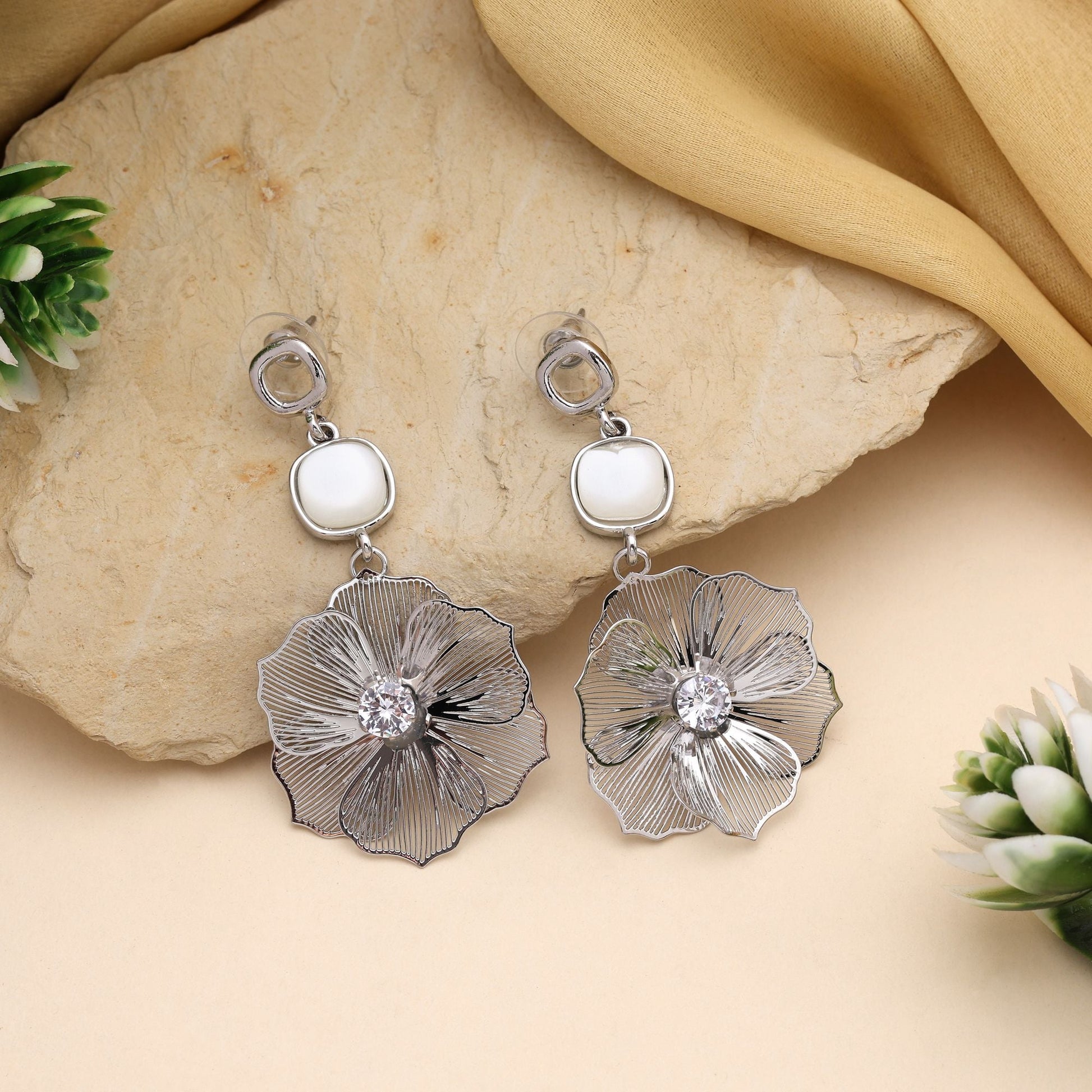 Wunderschöne silberfarbene, anlaufgeschützte Ohrringe mit antikem Design für elegante Anlässe