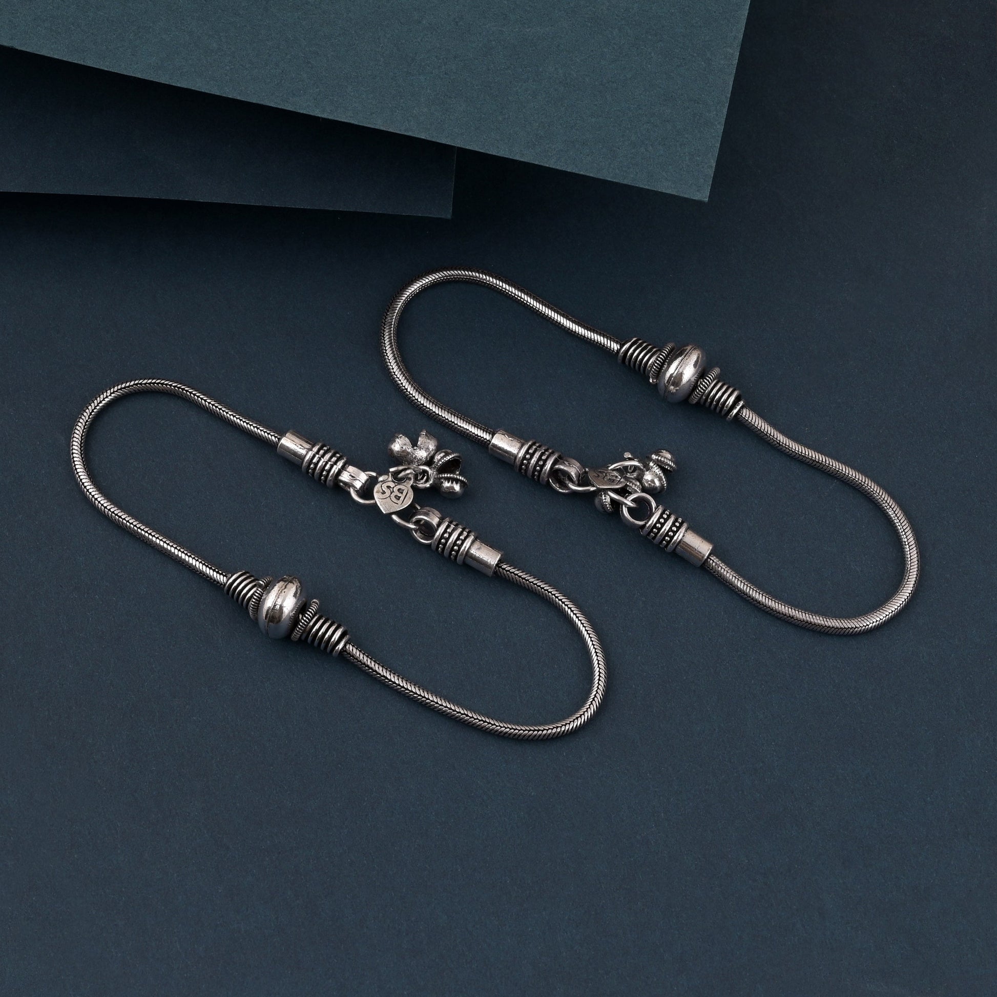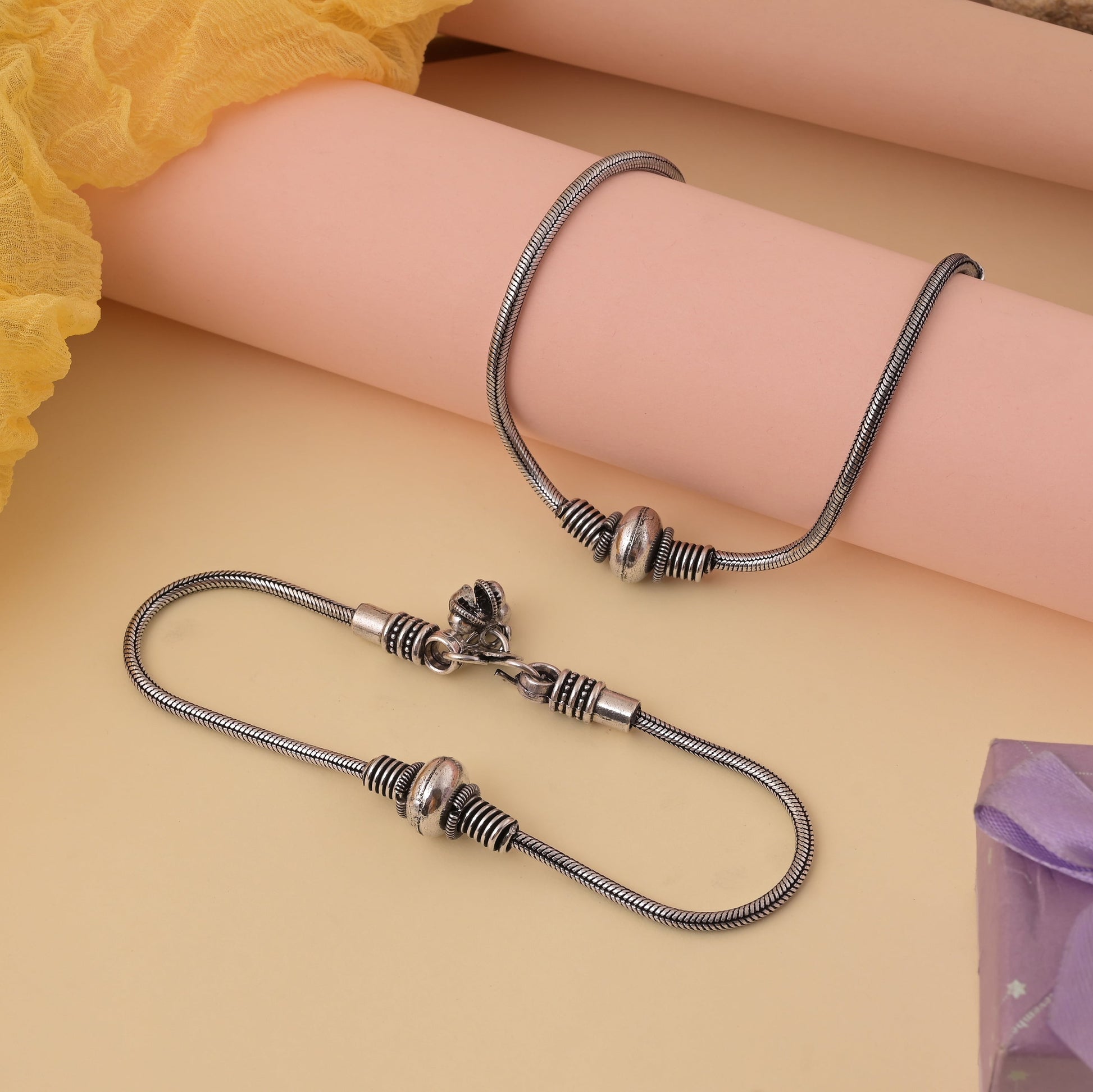 Verstellbares, silberfarbenes, oxidiertes Fußkettchen mit Antik-Finish und Tribal-Anhänger