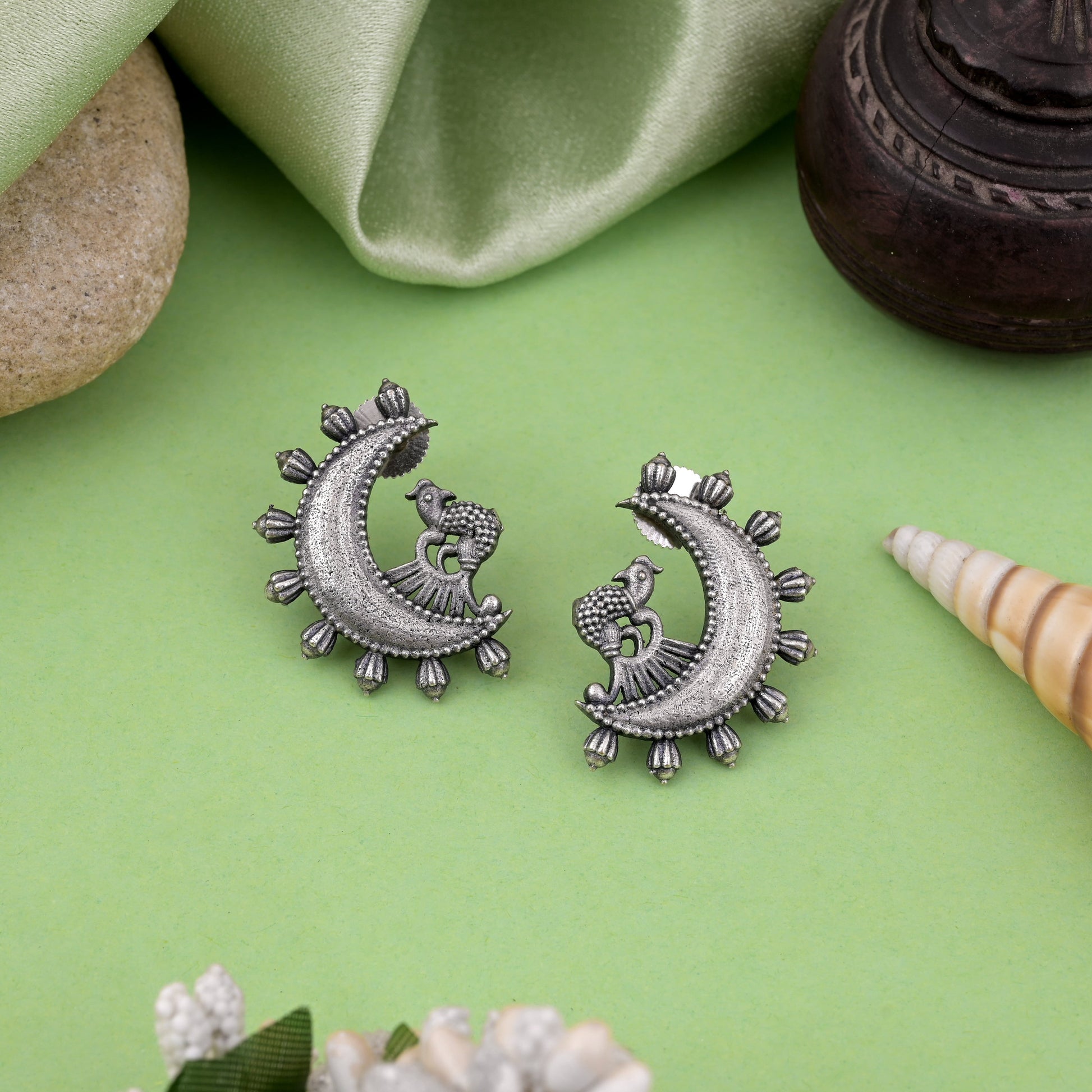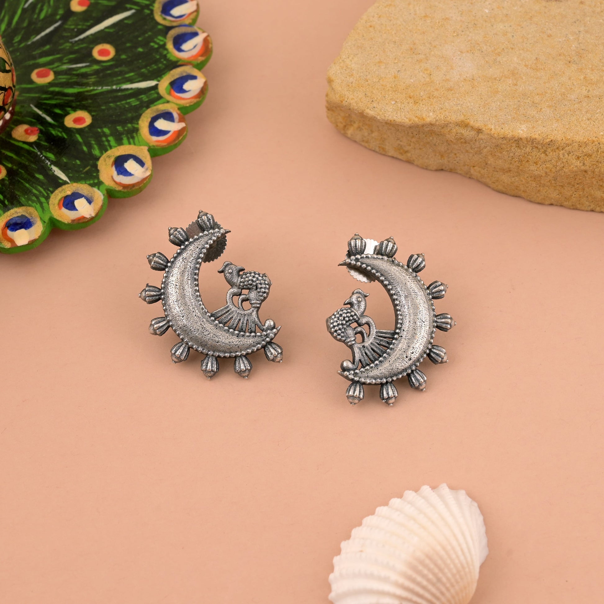Handgefertigte silberfarbene oxidierte Ohrringe mit ethnischen und künstlerischen Details