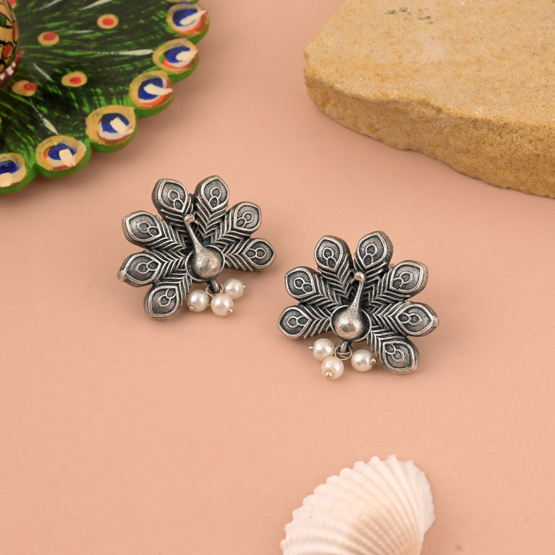 Traditionelle silberfarbene oxidierte Ohrringe mit stilvoller und eleganter Verarbeitung