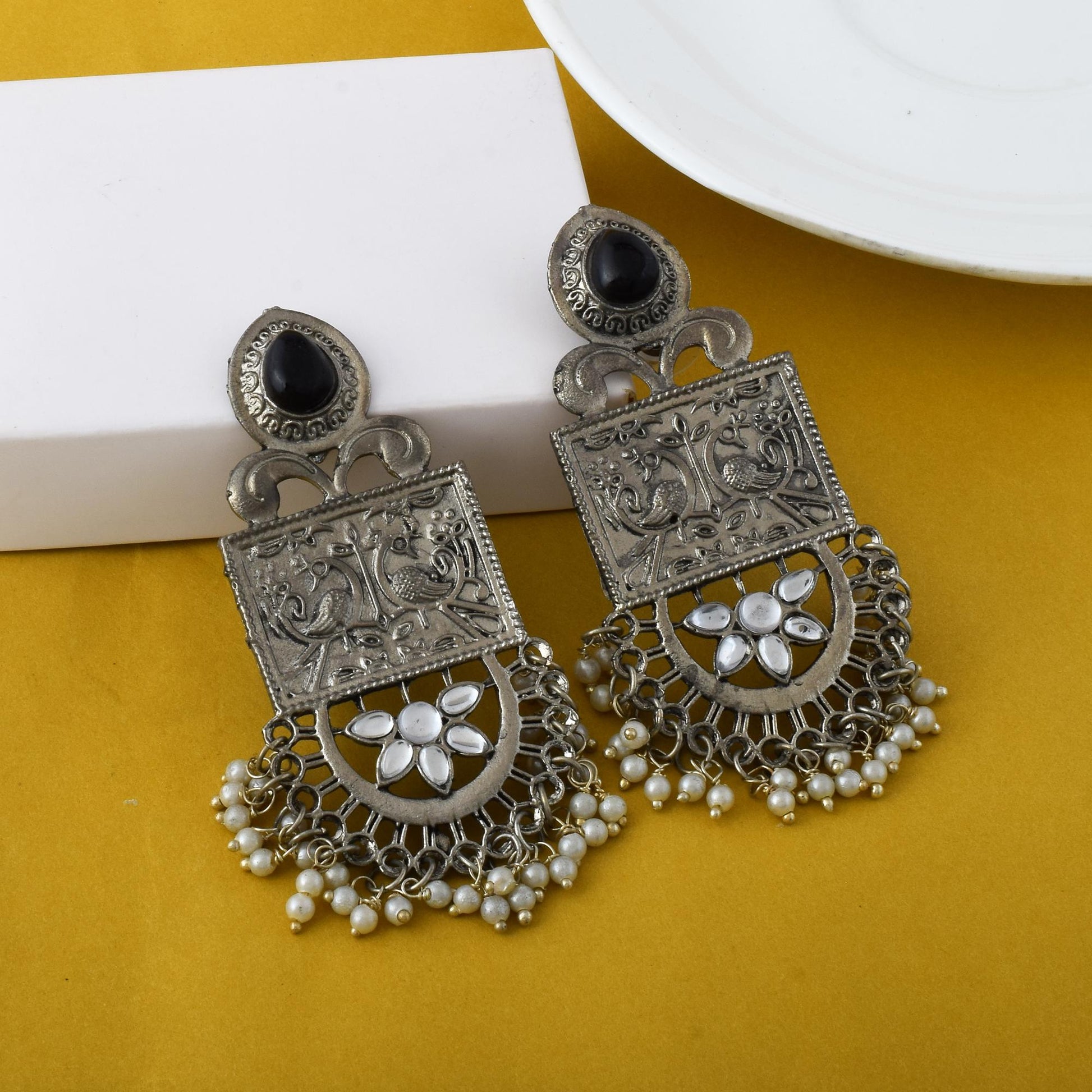 Stilvolle, silberfarbene, oxidierte Ohrringe, perfekt für festliche und ethnische Kleidung