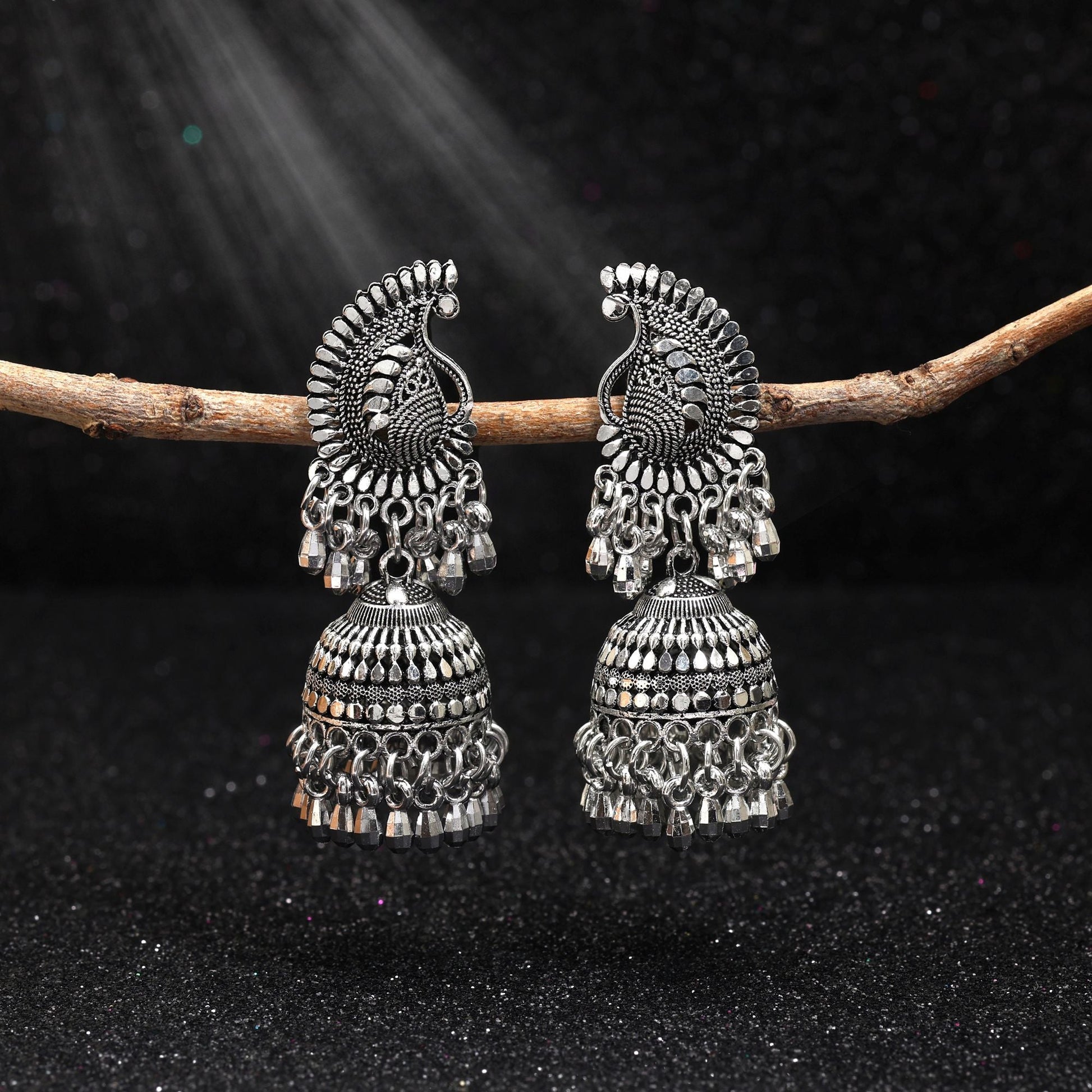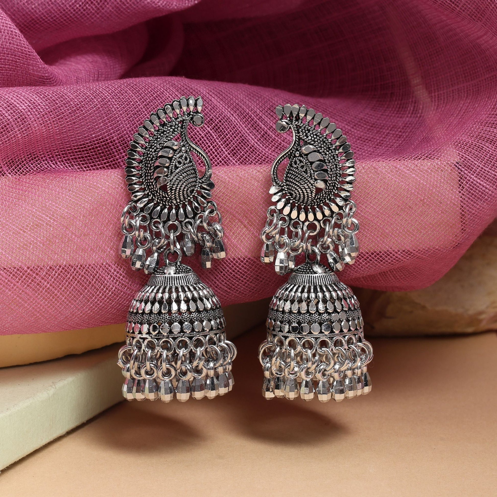 Elegante silberfarbene oxidierte Ohrringe für Hochzeitskleidung und alltägliche ethnische Mode