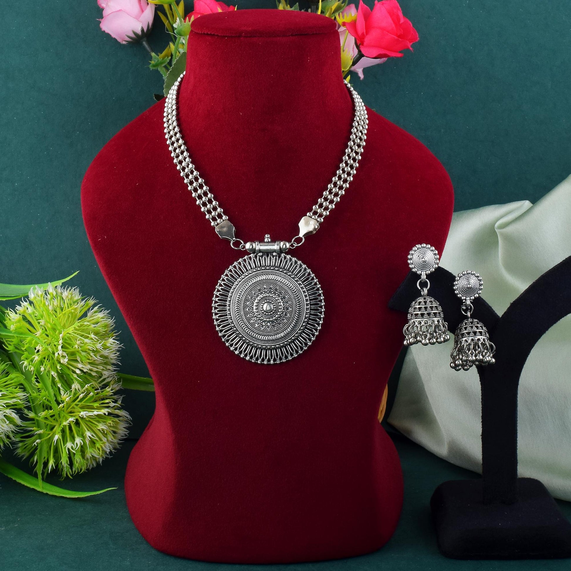 Silberfarbenes oxidiertes Halskettenset mit Vintage-Anhängern und eleganter Arbeit