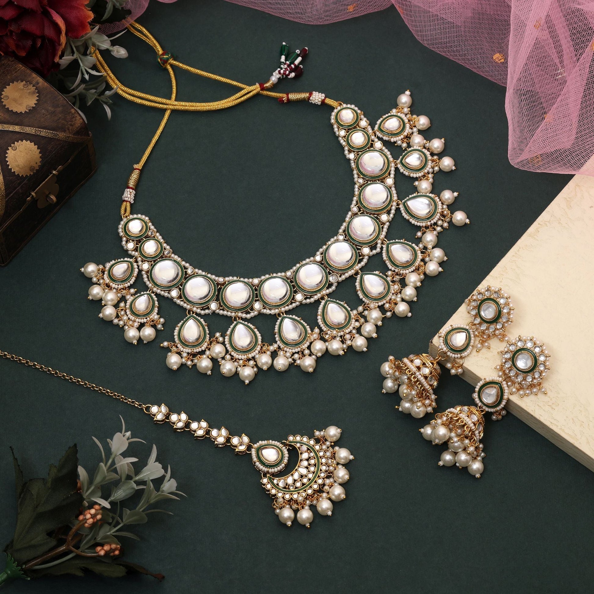 Exklusives Kundan-Halskettenset in Weiß für Partys, Bräute und festliche Feiern