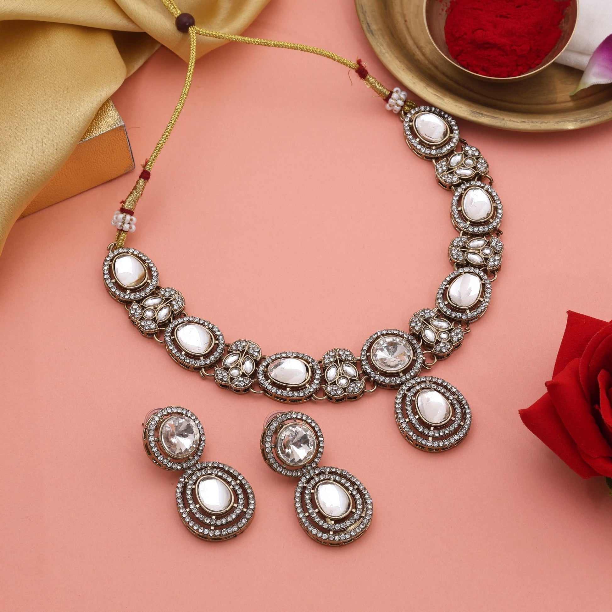 Königliches weißes Kundan-Halsketten-Set mit Perlen und Steinen für den Brautgebrauch