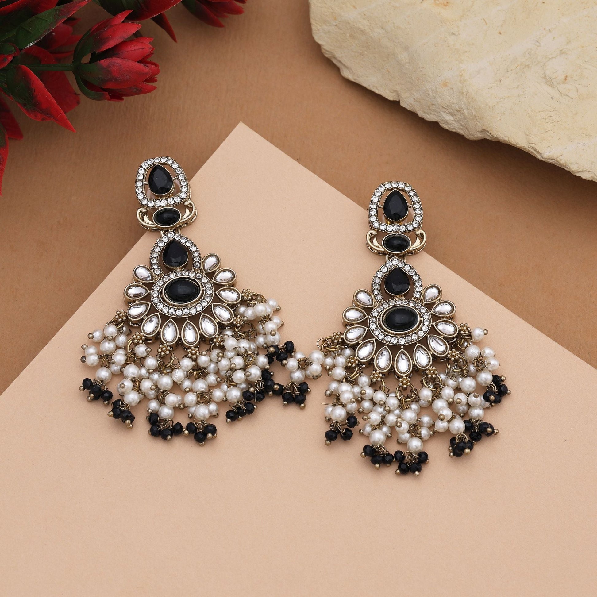 Classy Black Color Kundan Earrings With Sparkling Stones For Ethnic Occasions