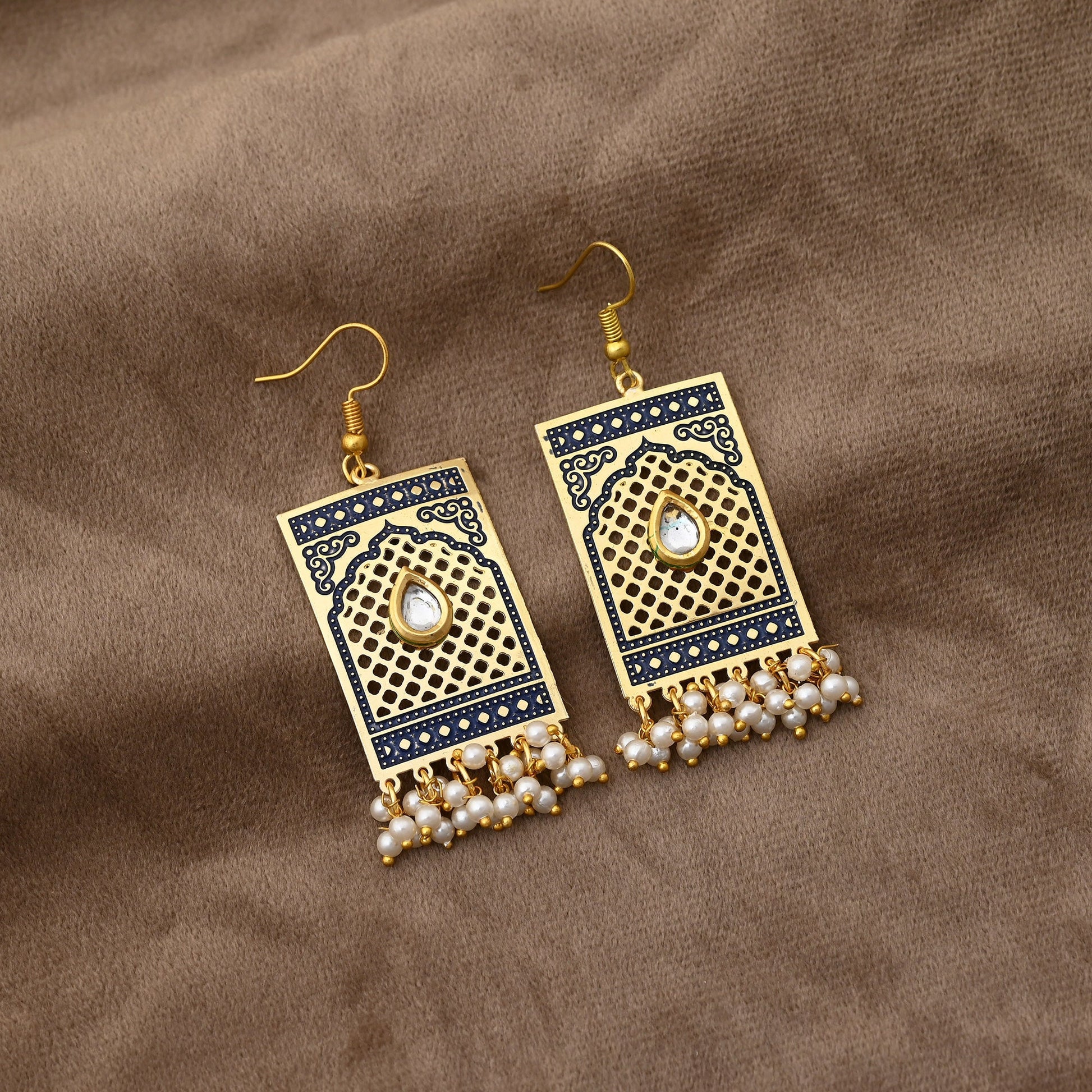 Attractive Blue Color Meenakari Earrings Perfect For Festivals, Parties, And Ethnic Outfits