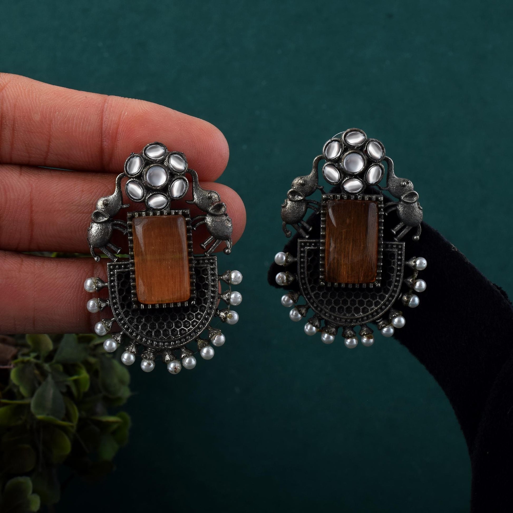 Earthy Brown Color Oxidised Earrings With Unique Tribal Engraving Design