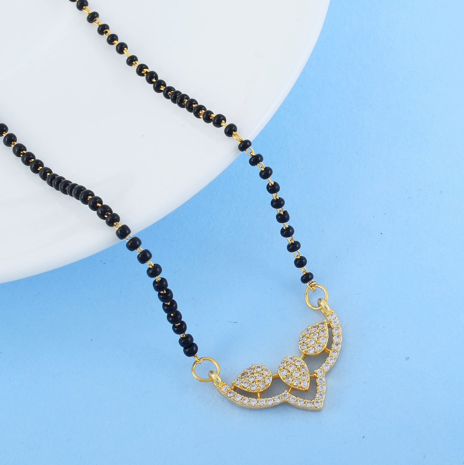 Gold Color American Diamond Mangalsutra With Center Heart Pendant Design