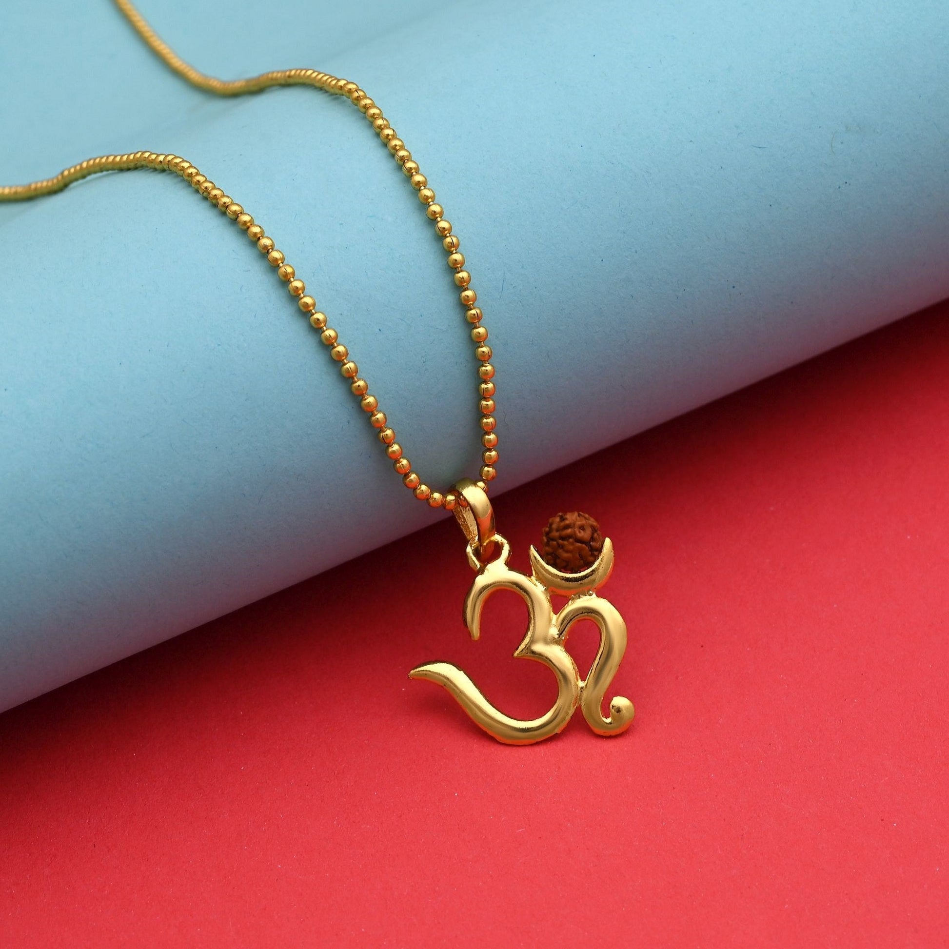 Pure Gold Color Om Emblem Rudraksha Mala Chain Necklace For Meditation