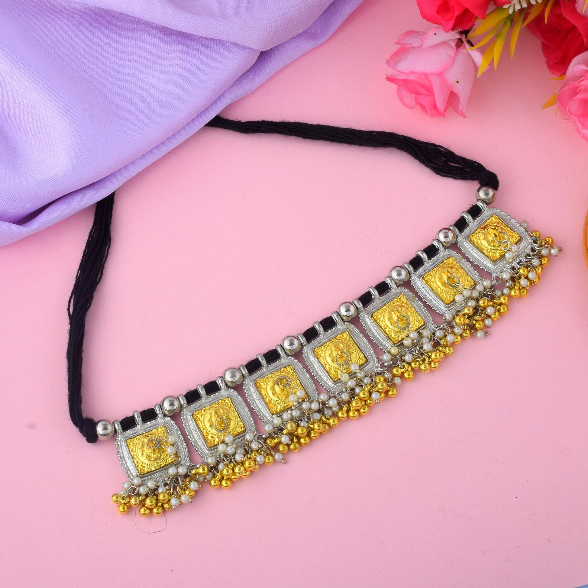 Vintage Gold & Silver Color Oxidised Necklace Set For Regal Ethnic Styling