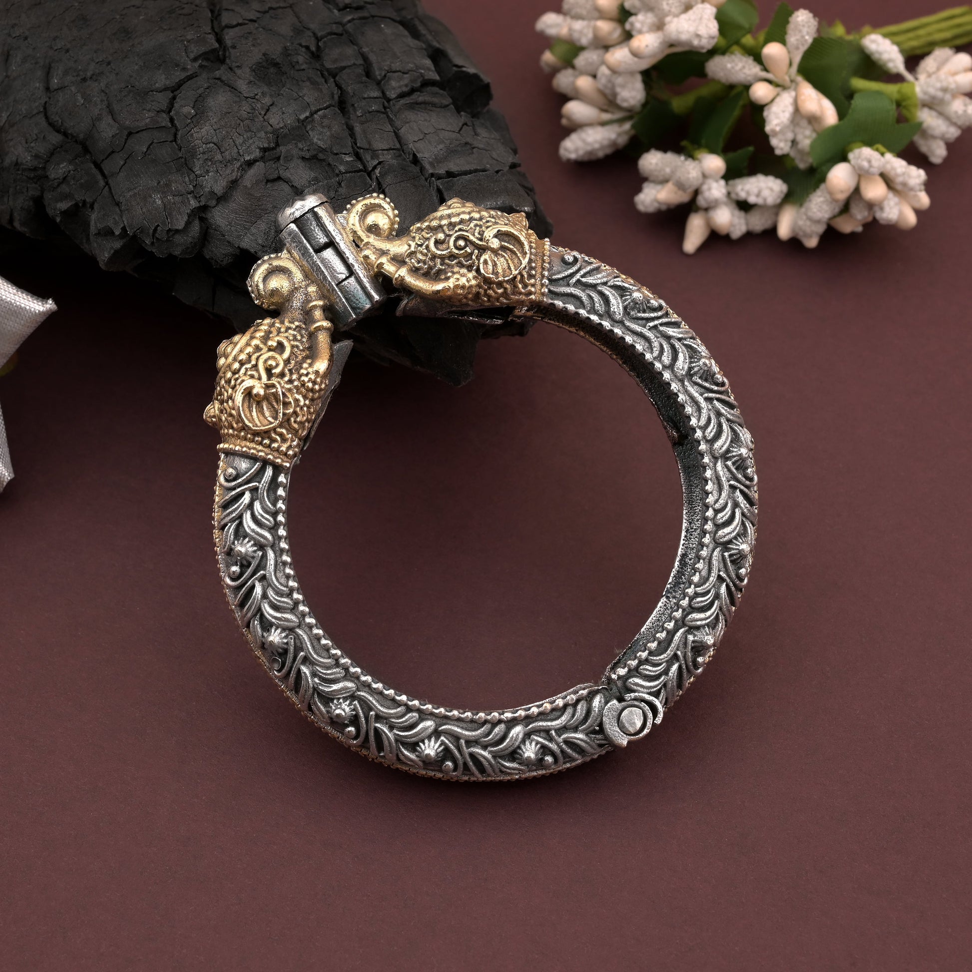 Gold & Silver Color Two Tone Oxidised Openable Bracelet For Unique Statement Style