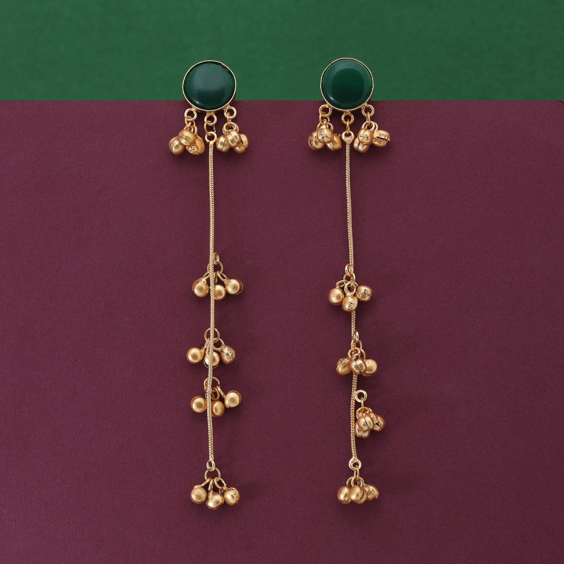 Green Color Festival Wear Elegant Long Kashmiri Earrings For Stylish Outfits