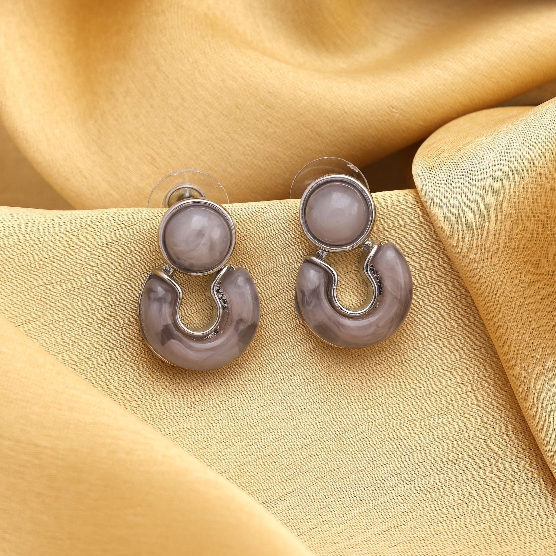 Classy Grey Color Anti Tarnish Earrings With Elegant Design Perfect For Formal Wear