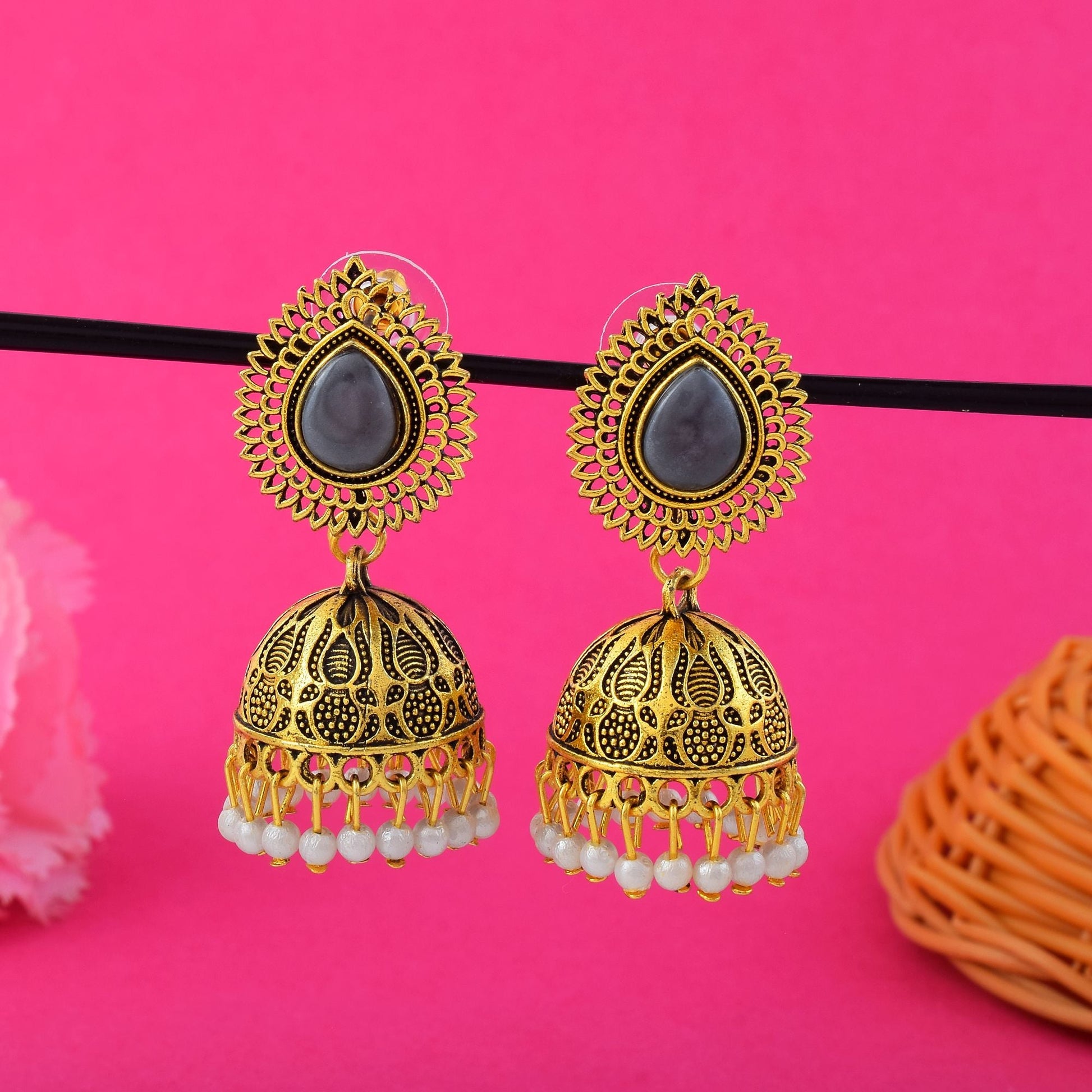 Exclusive Grey Color Oxidised Earrings Designed For Women’S Traditional Jewelry And Festive Occasions