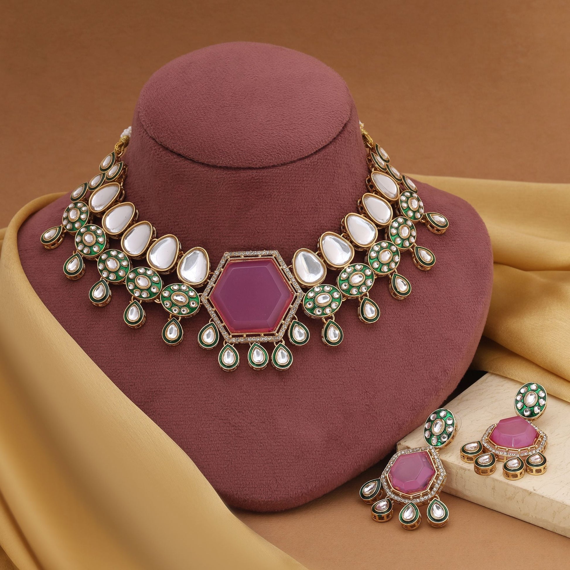Exclusive Light Purple Color Kundan Necklace Set With Elegant Stones For Bridal Jewellery