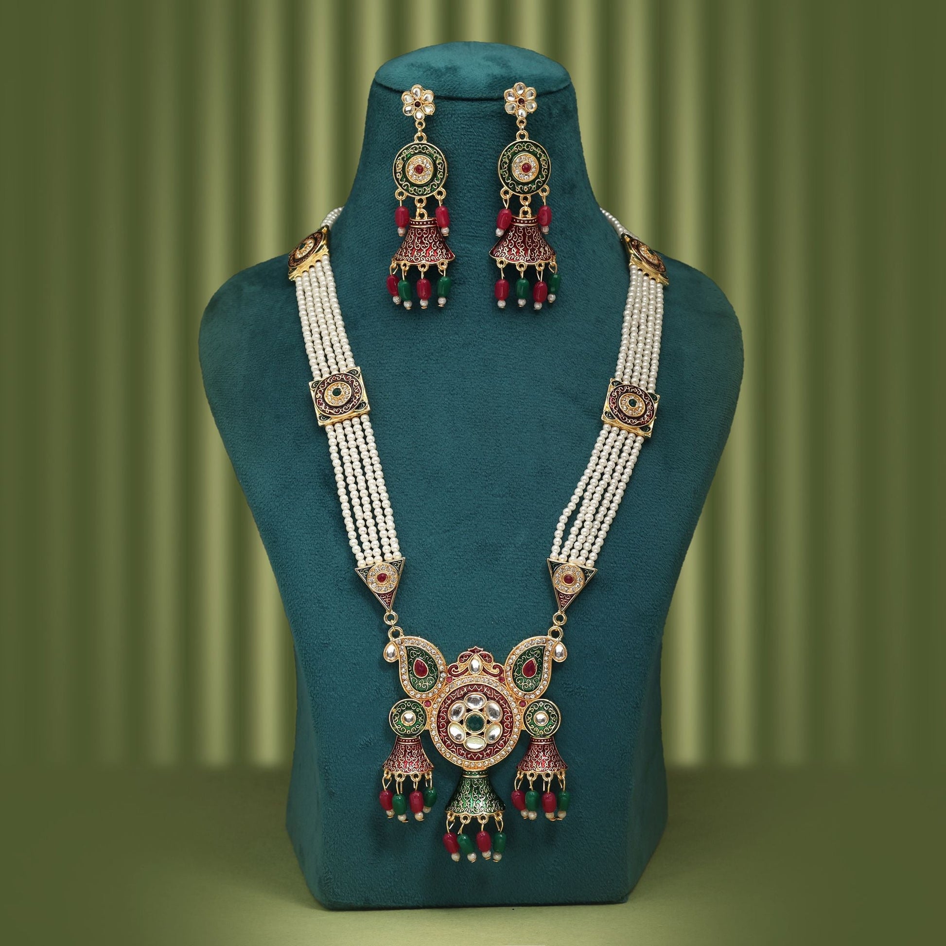 Royal Maroon & Green Color Rajputi Jewellery Rani Haar With Antique Ethnic Look