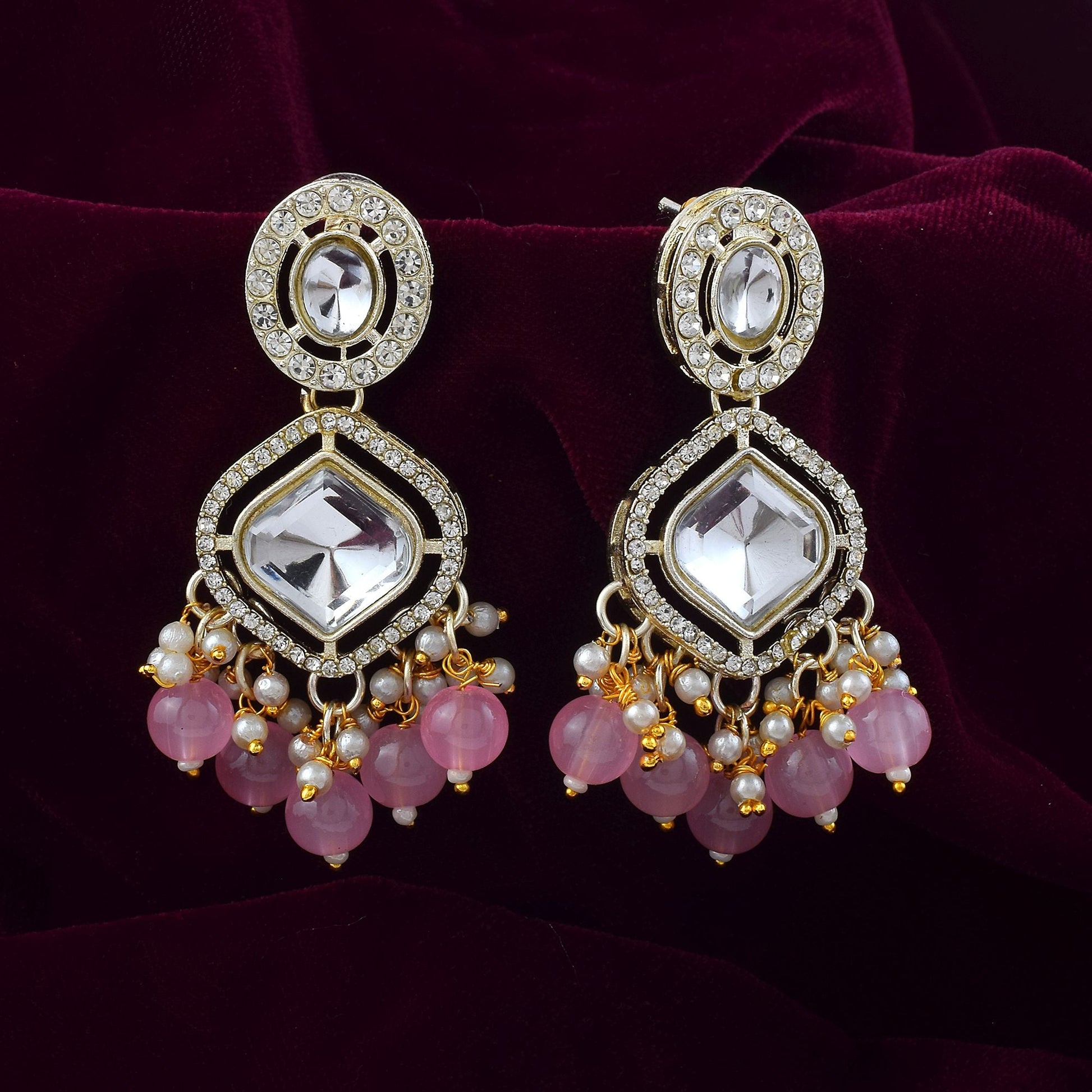 Gorgeous Pink Color Kundan Earrings Perfect for Bridal Wear and Festive Celebrations