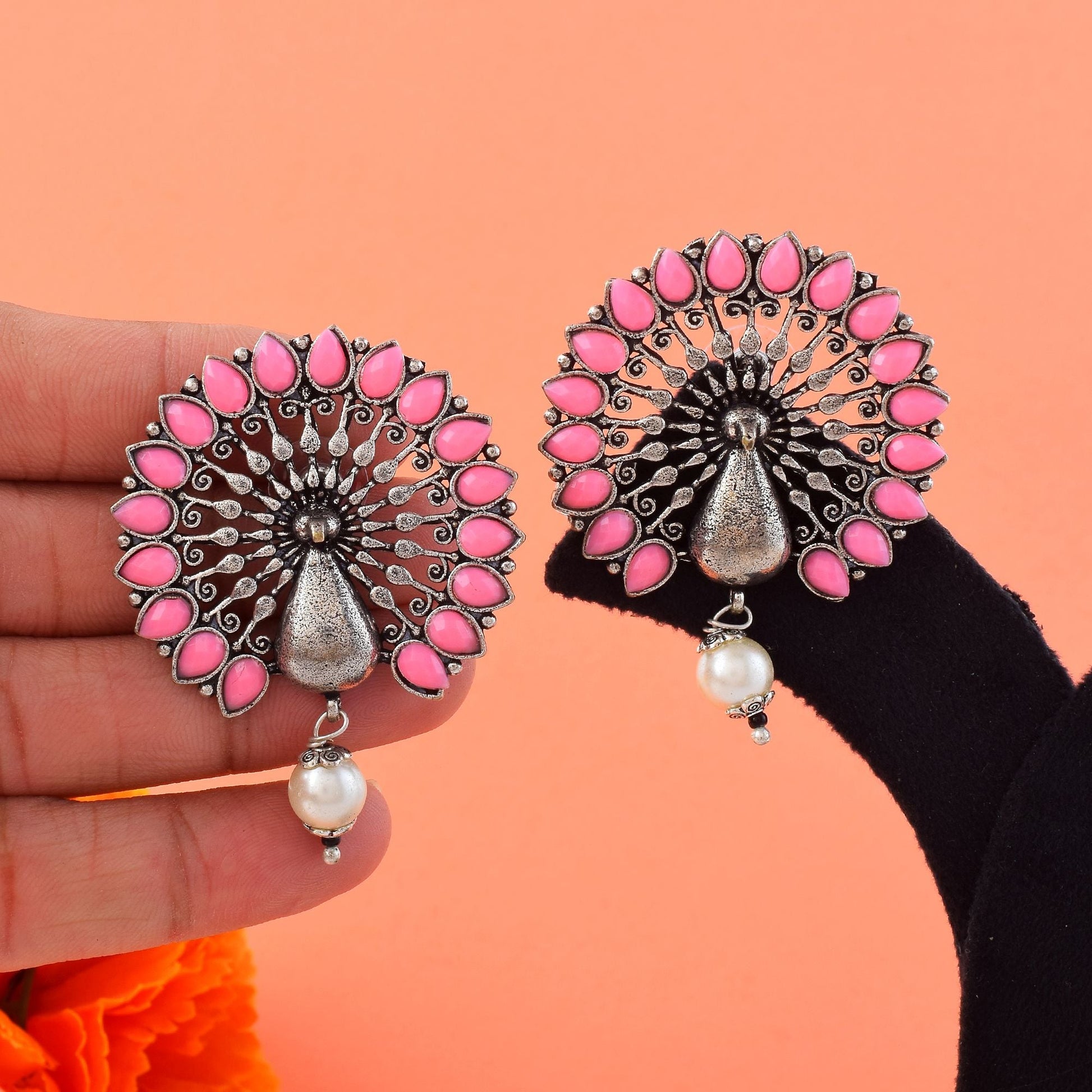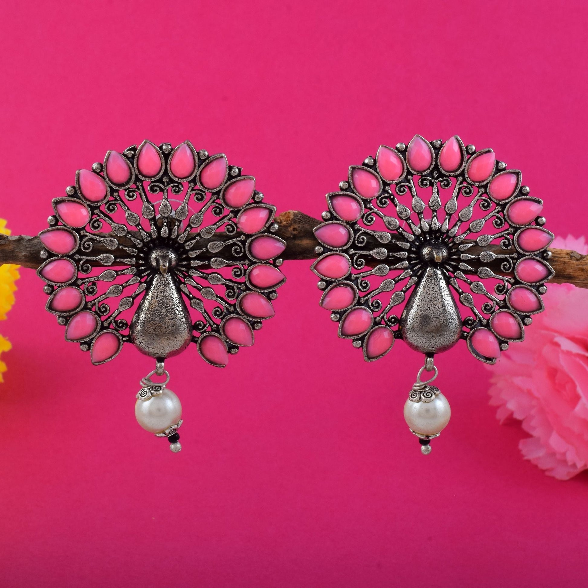 Beautiful Pink Color Oxidised Earrings Perfect For Women’S Fashion, Bridal, And Ethnic Styling