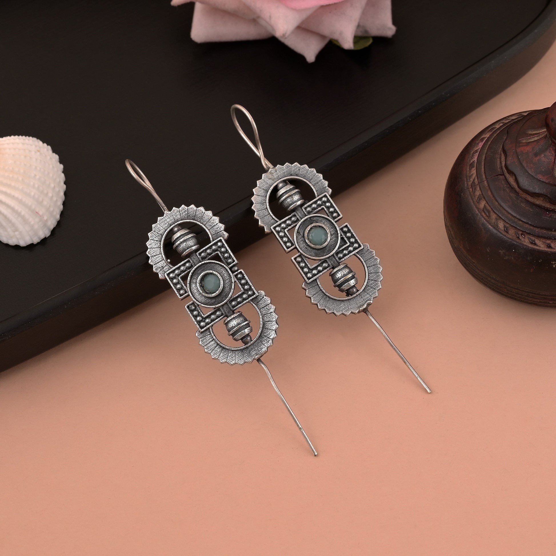 Bold Pista Green Color Oxidised Earrings With Ear Cuff For Stylish Edge