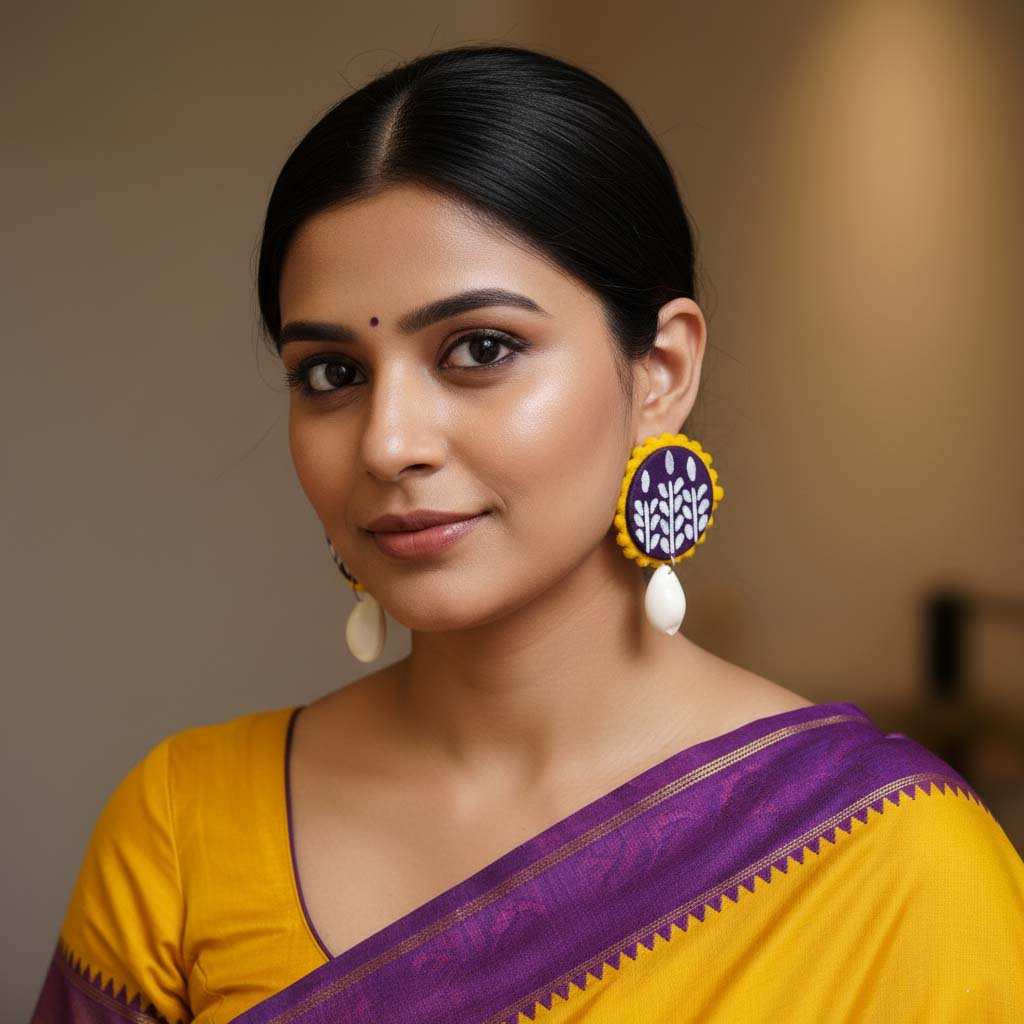 Purple Color Wooden Handcraft Earrings With Handcrafted Artistic Bohemian Touch